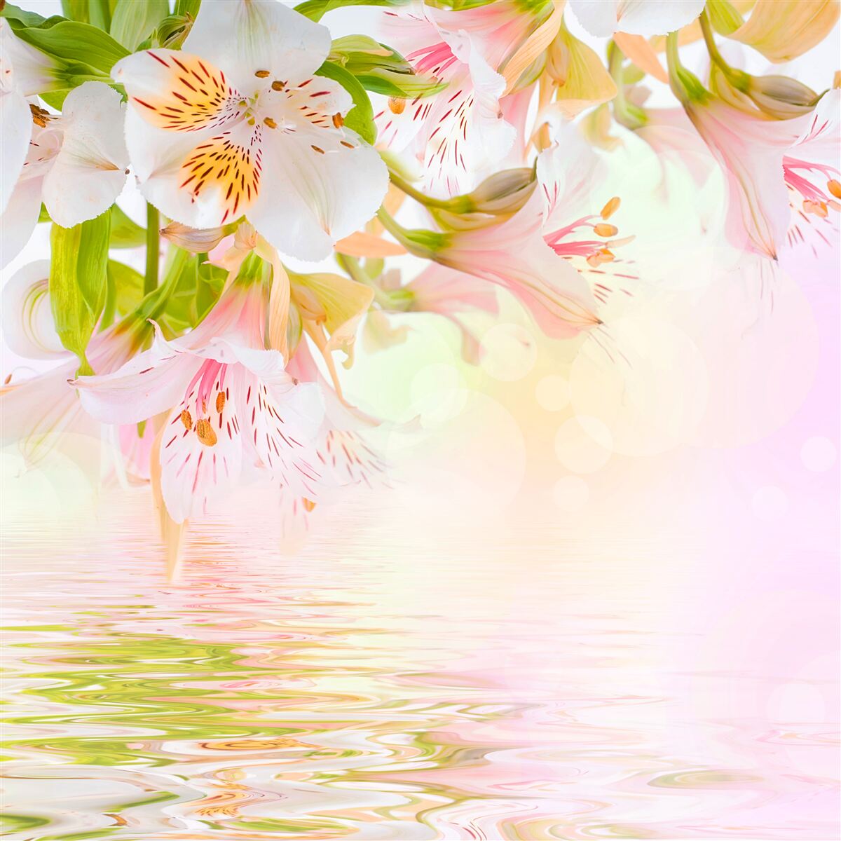 Tapeta Fototapeta delikatne biało-różowe kwiaty docierają do wdowy (artykuł a96061 ) z kategorii Fototapety Popularne