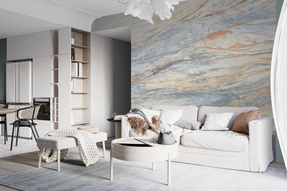 Tapeta Fototapeta delikatne plamy na jasnym marmurze (artykuł a96149 ) z kategorii Fototapety Popularne