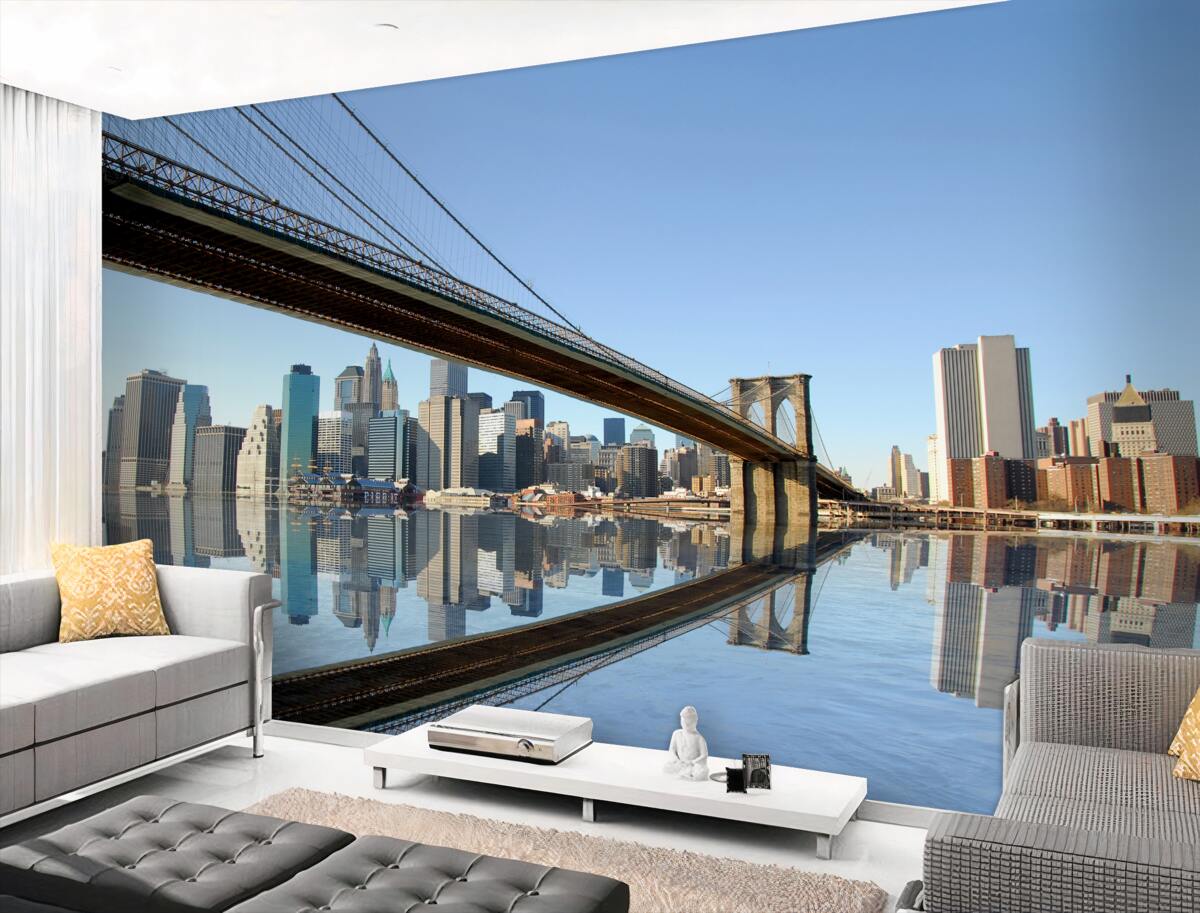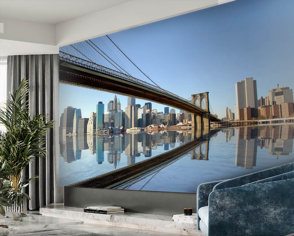 Tapeta Fototapeta długi most do metropolii po drugiej stronie rzeki (artykuł a96044 ) z kategorii Fototapety Popularne