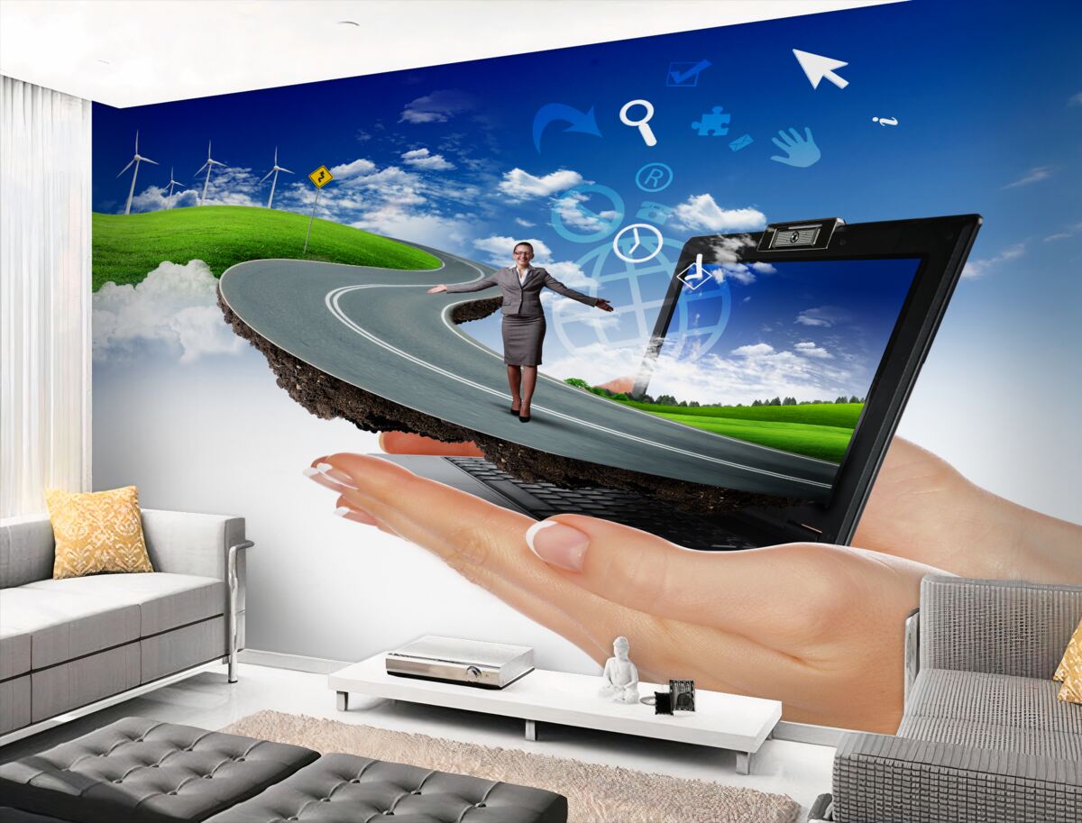 Tapeta Fototapeta droga do nieba z chodzącą dziewczyną abstrakcją (artykuł a95974 ) z kategorii Fototapety Popularne