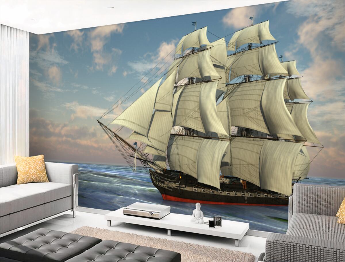 Tapeta Fototapeta duża piękna żaglówka na wodzie (artykuł a97505 ) z kategorii Fototapety Popularne