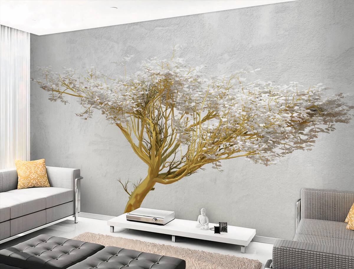 Tapeta Fototapeta duże drzewo z wieloma gałęziami i białymi kwiatami (artykuł a96420 ) z kategorii Fototapety Popularne