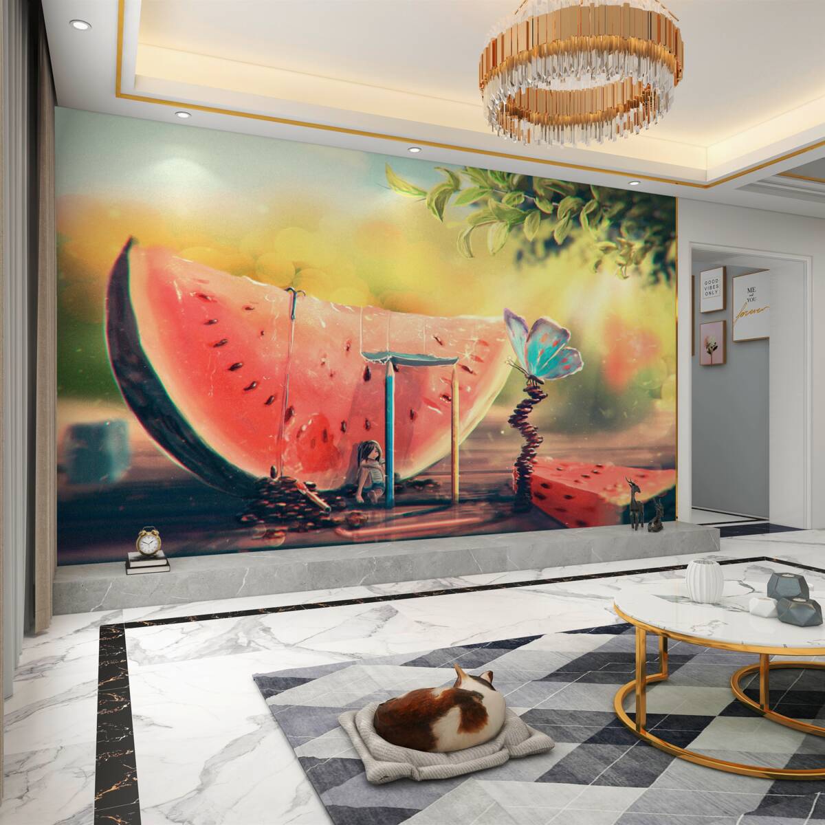 Tapeta Fototapeta duży kawałek soczystego arbuza (artykuł a96331 ) z kategorii Fototapety Popularne