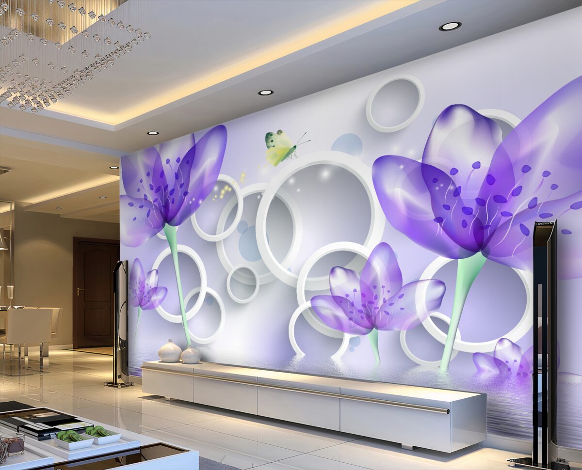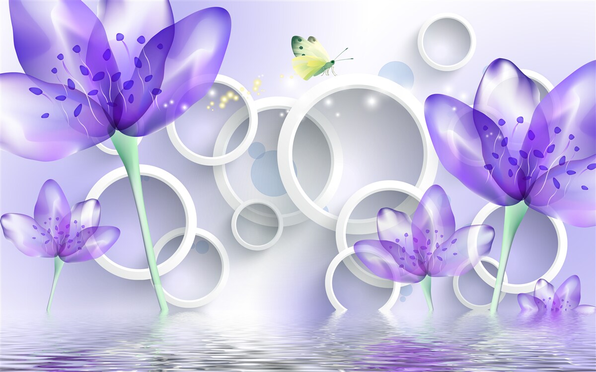 Tapeta Fototapeta fantastyczne fioletowe kwiaty i białe kółka (artykuł a96327 ) z kategorii Fototapety Popularne