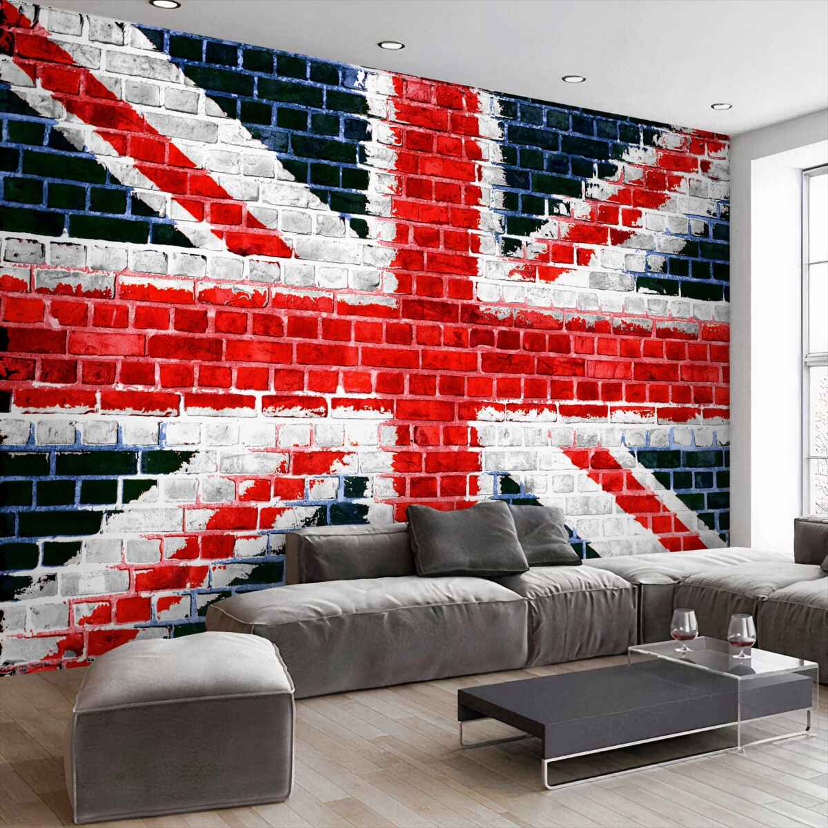 Tapeta Fototapeta Flaga Anglii na ścianie z cegły (artykuł a95847 ) z kategorii Fototapety Popularne