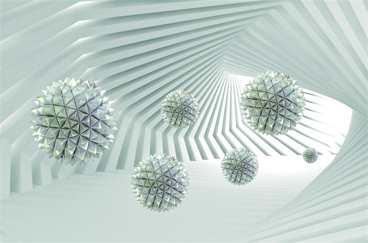 Tapeta Fototapeta geometryczny tunel z pływającymi sharai (artykuł a95084 ) z kategorii Fototapety Popularne