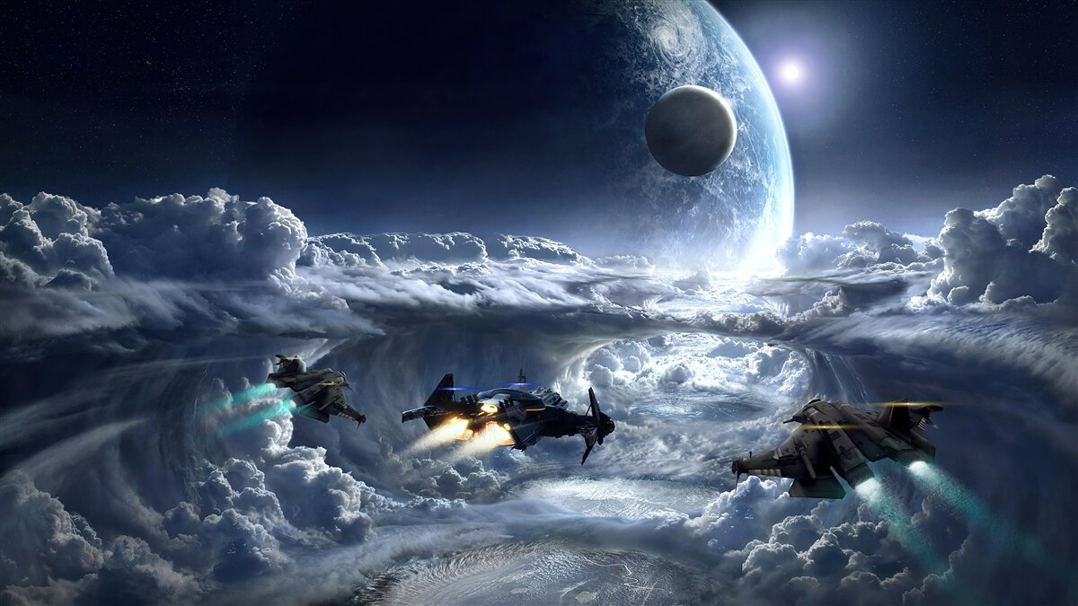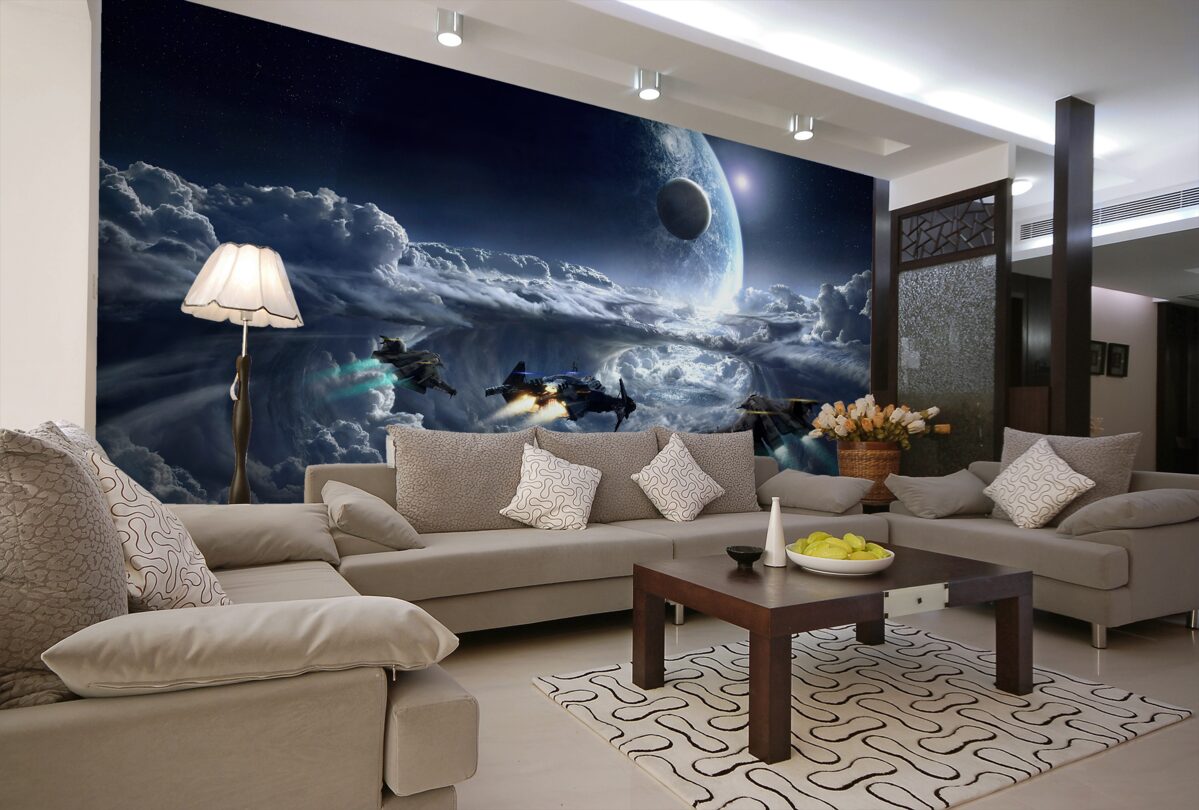Tapeta Fototapeta gęste chmury na tle dużej planety (artykuł a97098 ) z kategorii Fototapety Popularne