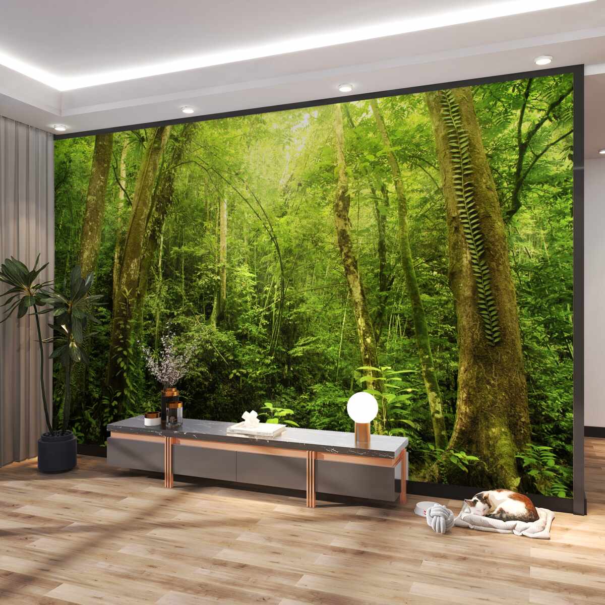 Tapeta Fototapeta gęsty zielony las przebija słońce (artykuł a95759 ) z kategorii Fototapety Popularne