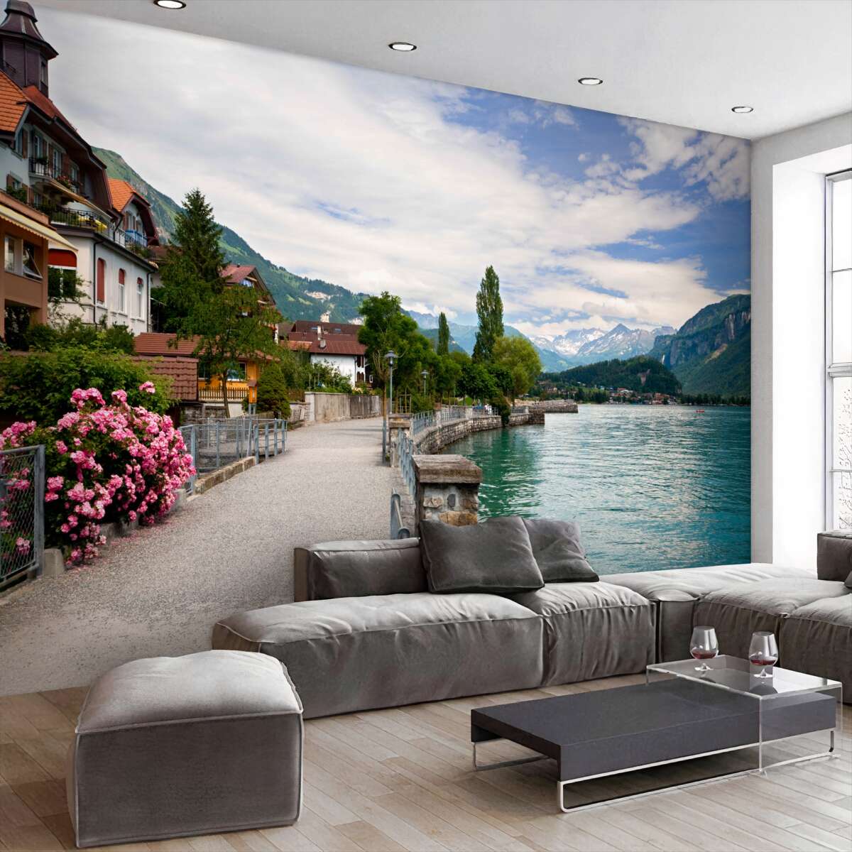 Tapeta Fototapeta górska wioska nad wodą (artykuł a95375 ) z kategorii Fototapety Popularne