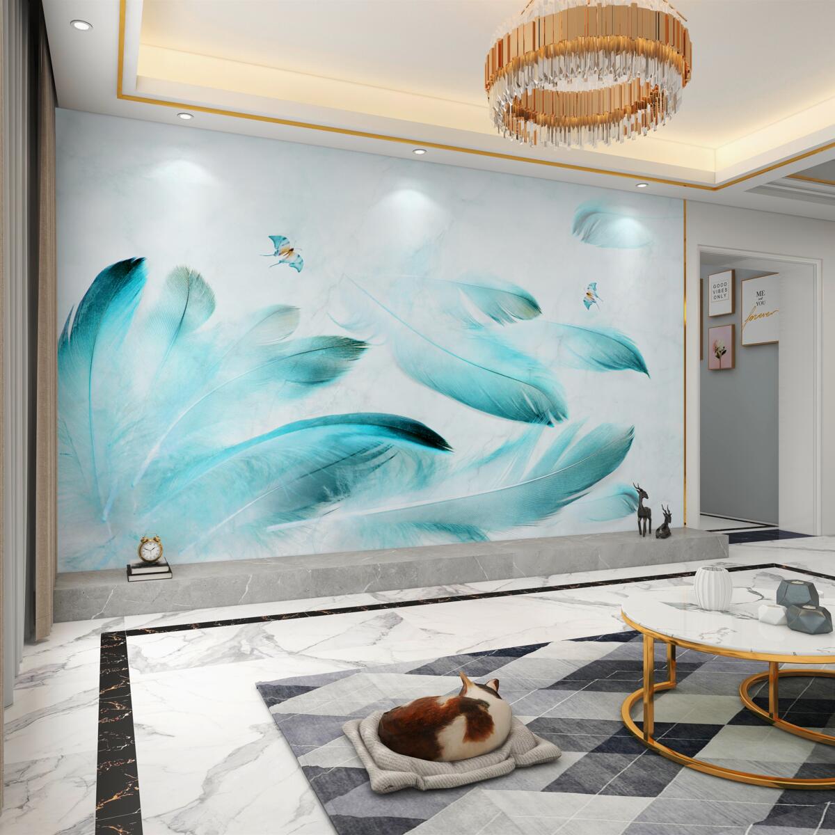 Tapeta Fototapeta jasnoniebieskie pióra (artykuł a97526 ) z kategorii Fototapety Popularne