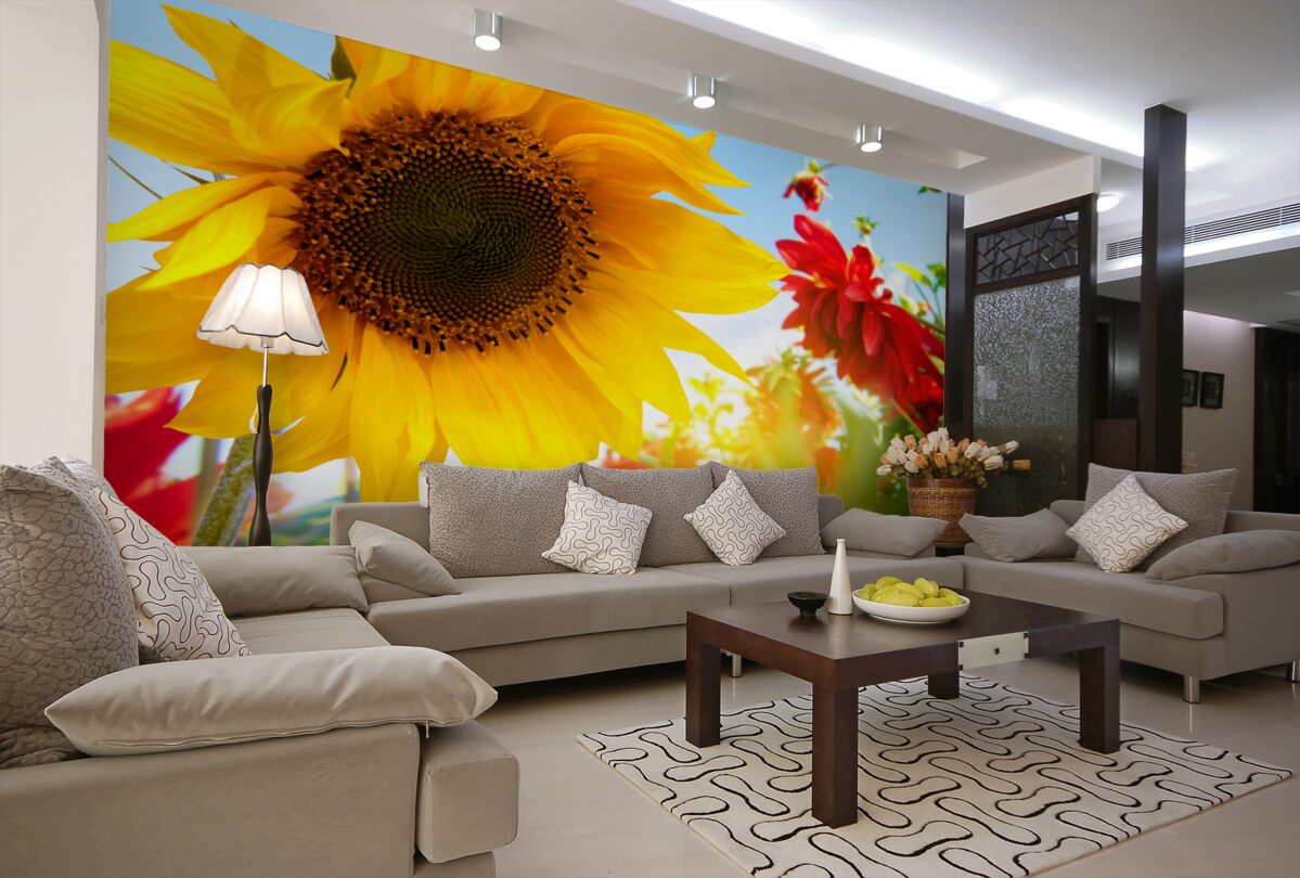 Tapeta Fototapeta jasny słonecznik w słoneczny dzień (artykuł a95810 ) z kategorii Fototapety Popularne