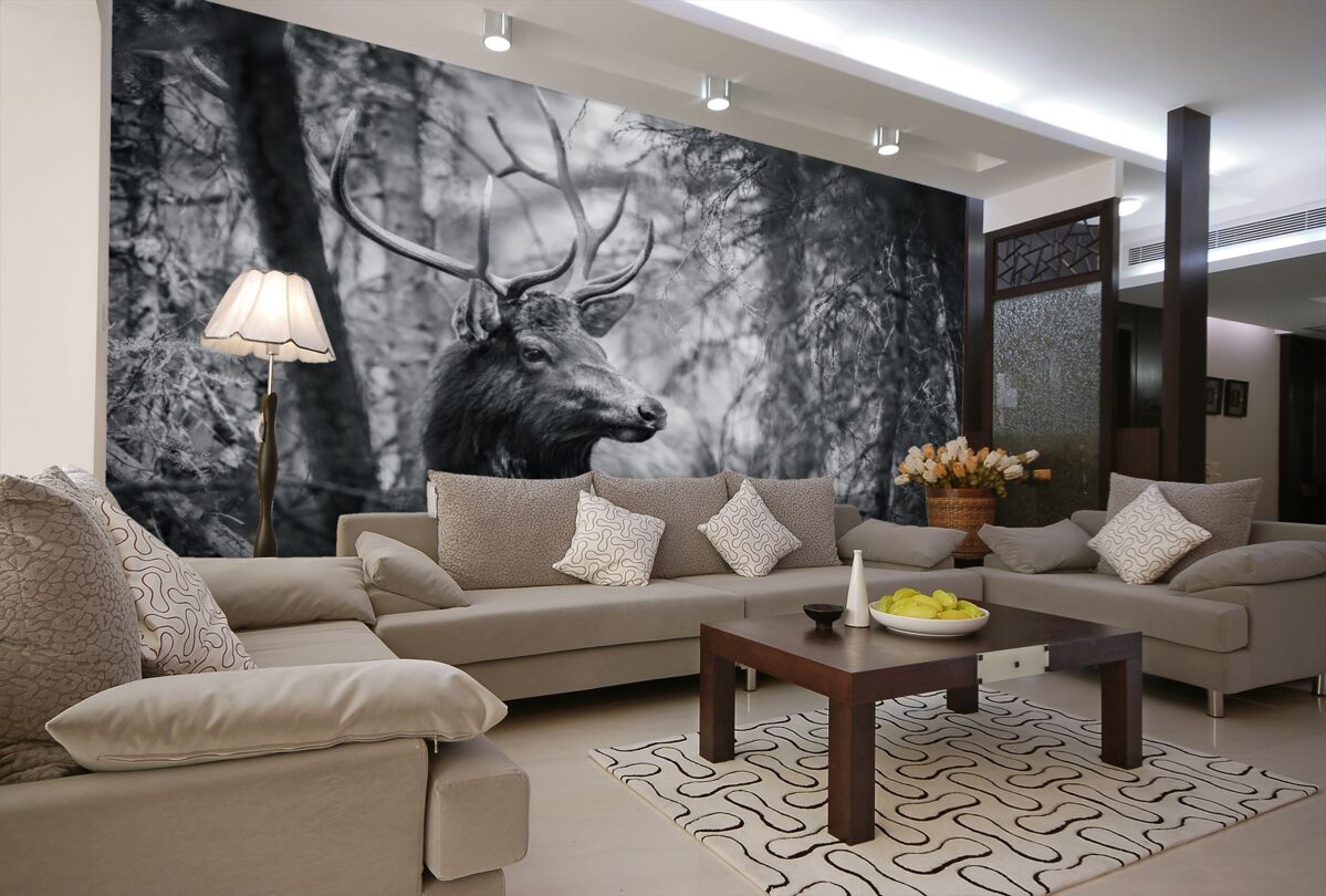 Tapeta Fototapeta jeleń z rogami leży w lesie (artykuł a97222 ) z kategorii Fototapety Popularne