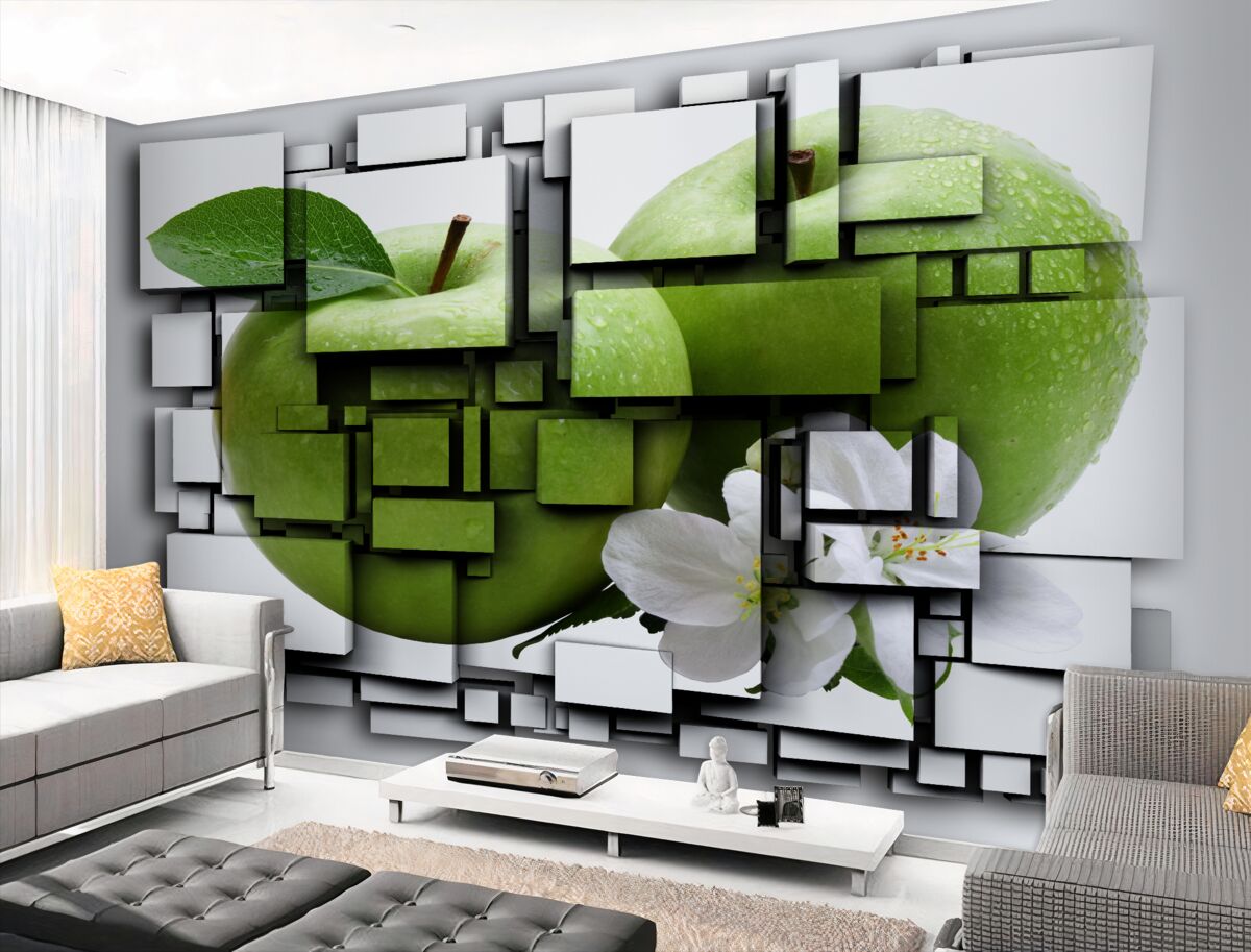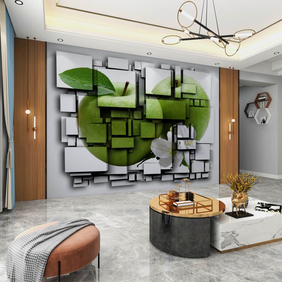 Tapeta Fototapeta kompozycja prostokątów z nadrukiem zielonego jabłka (artykuł a95965 ) z kategorii Fototapety Popularne