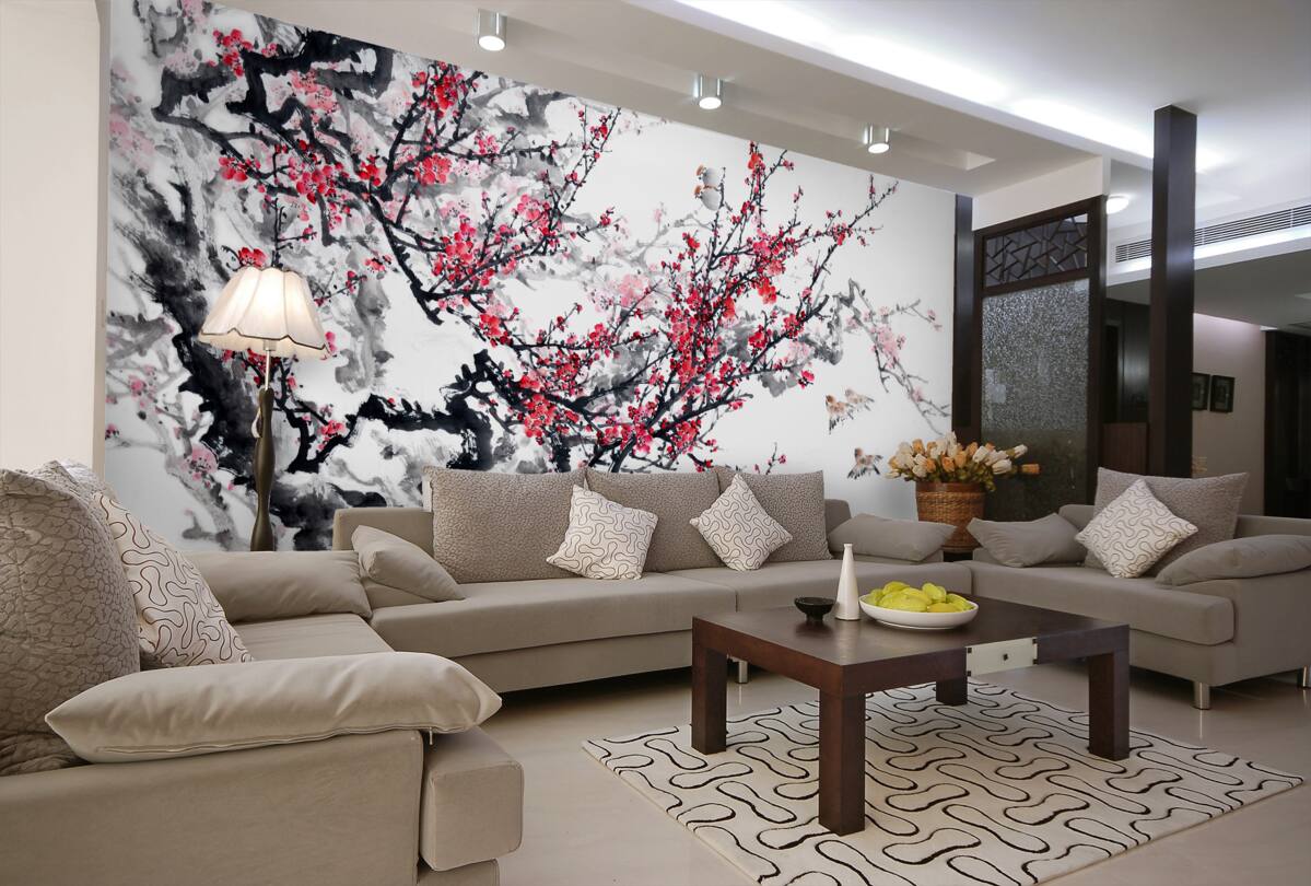 Tapeta Fototapeta Kwiaty sakury kwitną na gałęziach drzew (artykuł a95926 ) z kategorii Fototapety Popularne