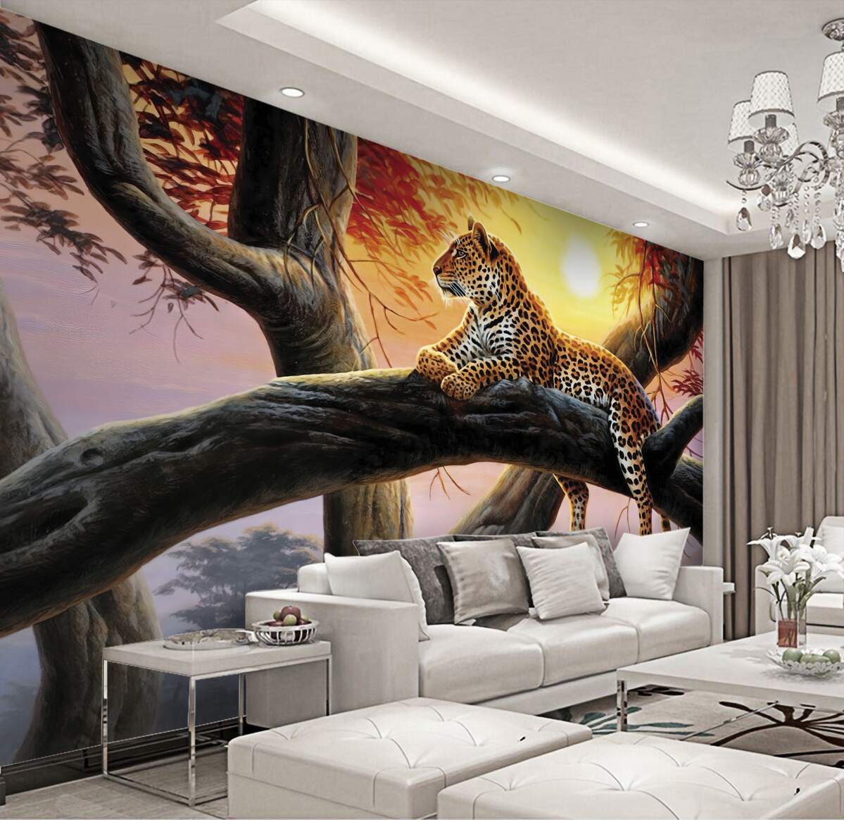Tapeta Fototapeta lampart odpoczywa na drzewie (artykuł a97139 ) z kategorii Fototapety Popularne