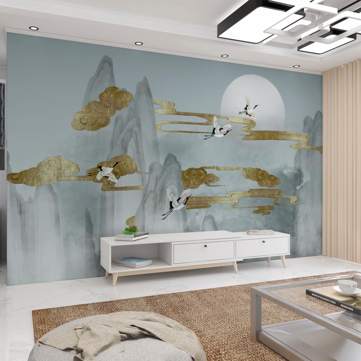 Tapeta Fototapeta latające bociany w świecie fantasy (artykuł a96576 ) z kategorii Fototapety Popularne