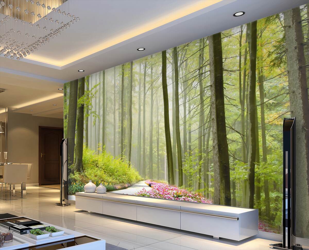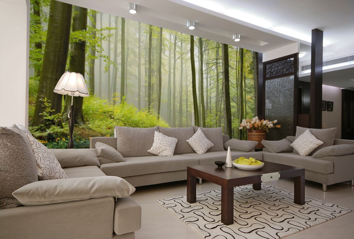 Tapeta Fototapeta lekka mgła w smukłym lesie (artykuł a95807 ) z kategorii Fototapety Popularne