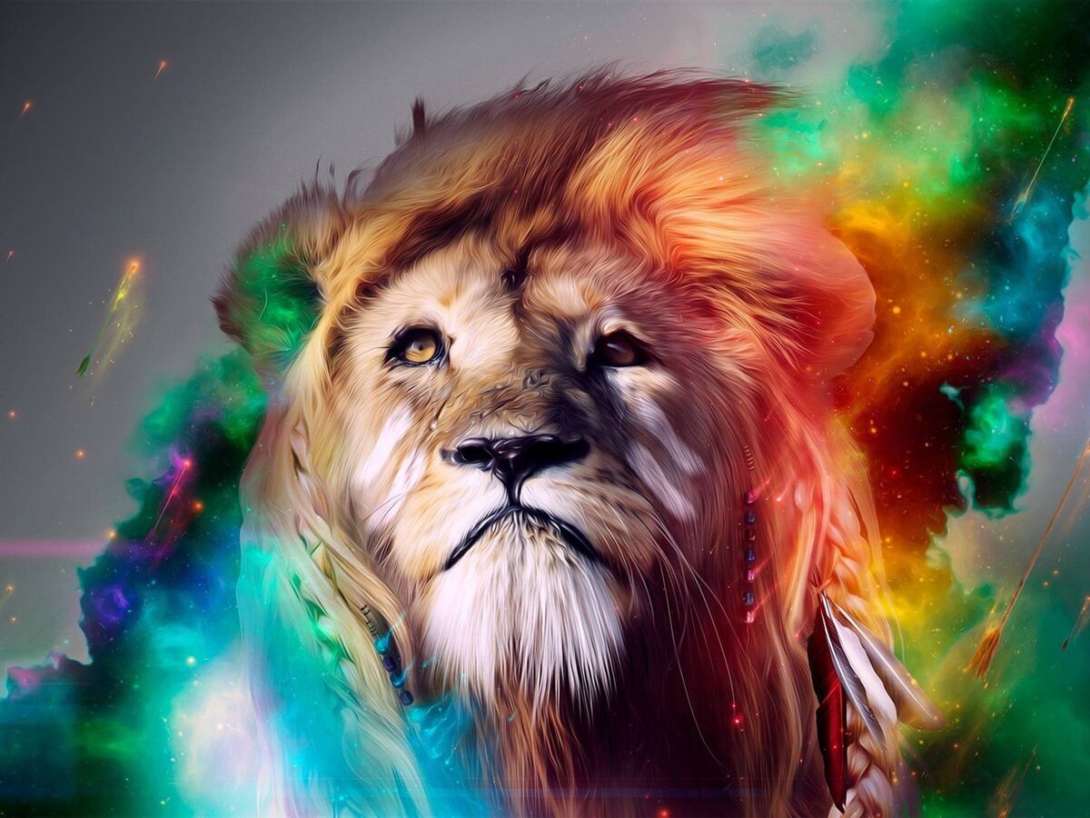Fototapeta lew z piękną abstrakcją grzywy w jasnych kolorach