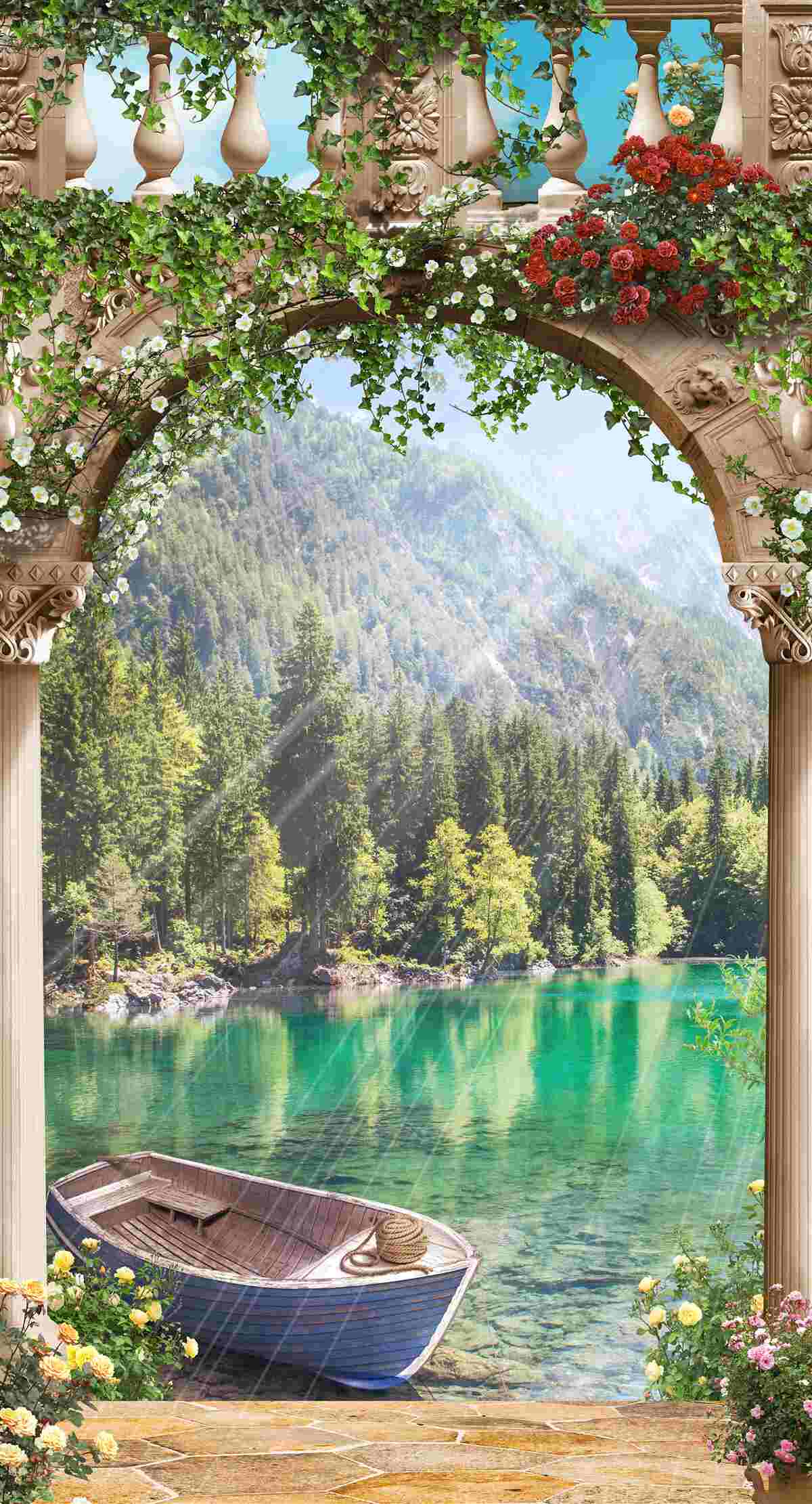 Tapeta Fototapeta łódź na dziobie w kwiatach (artykuł a96903 ) z kategorii Fototapety Popularne