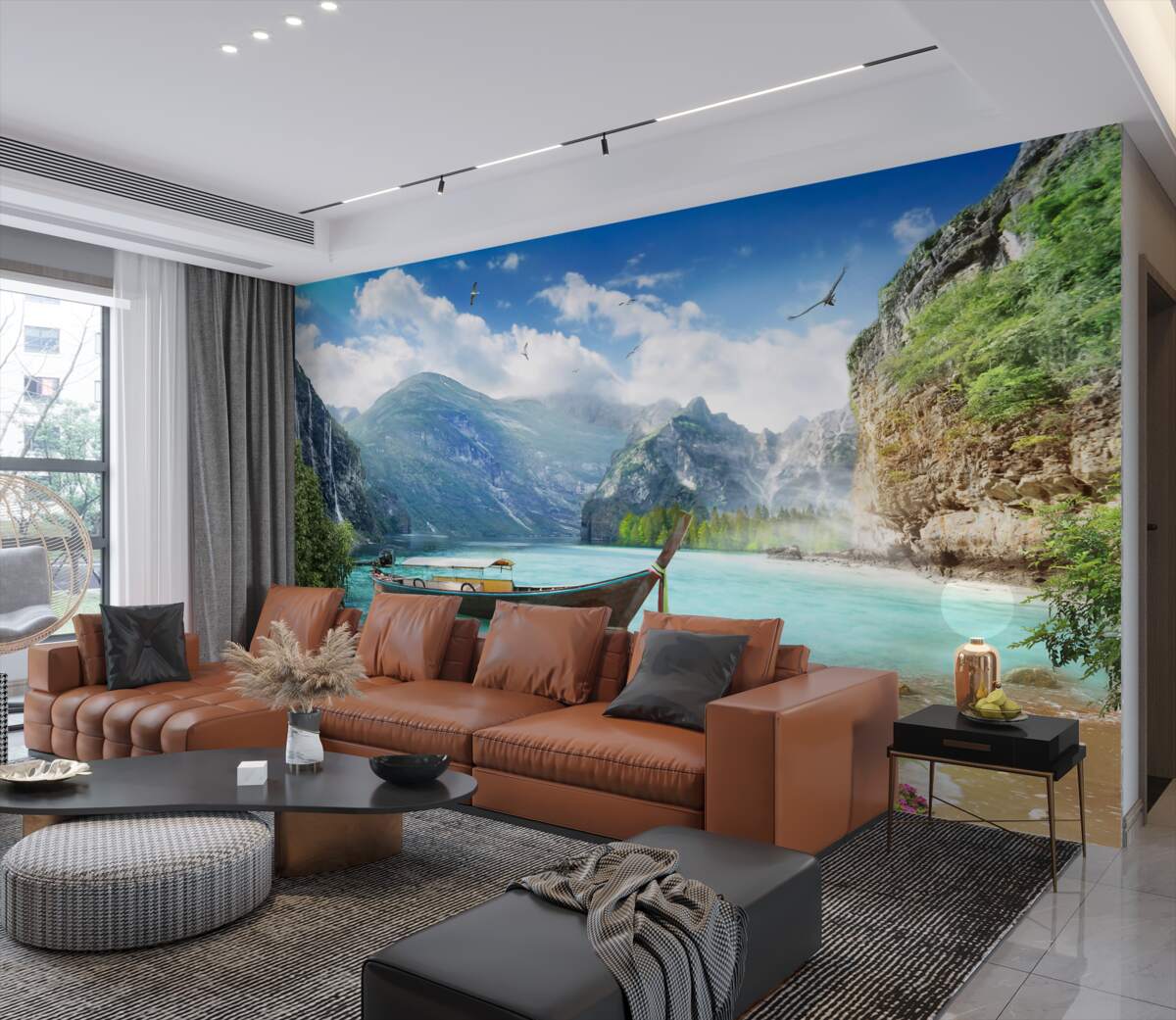 Tapeta Fototapeta łódź na górskim jeziorze (artykuł a96971 ) z kategorii Fototapety Popularne