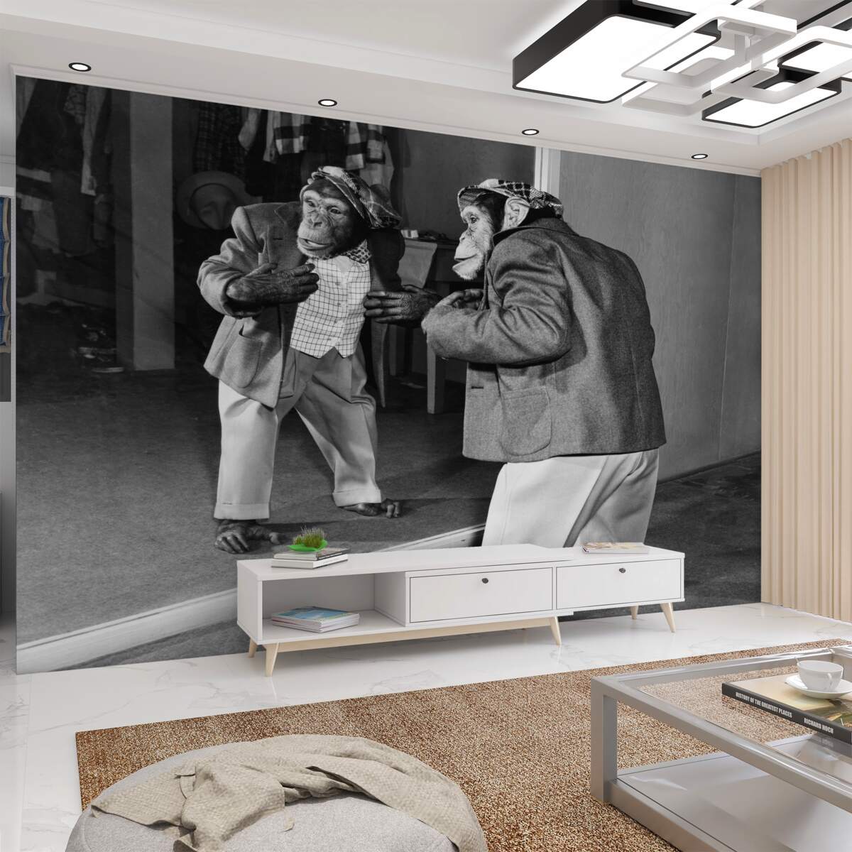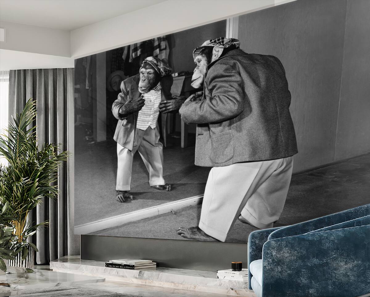 Tapeta Fototapeta małpa w kostiumie przed lustrem (artykuł a95508 ) z kategorii Fototapety Popularne