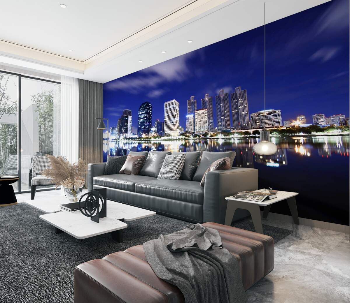 Tapeta Fototapeta miasto nocą w wodzie odbicie w podświetleniu (artykuł a95804 ) z kategorii Fototapety Popularne
