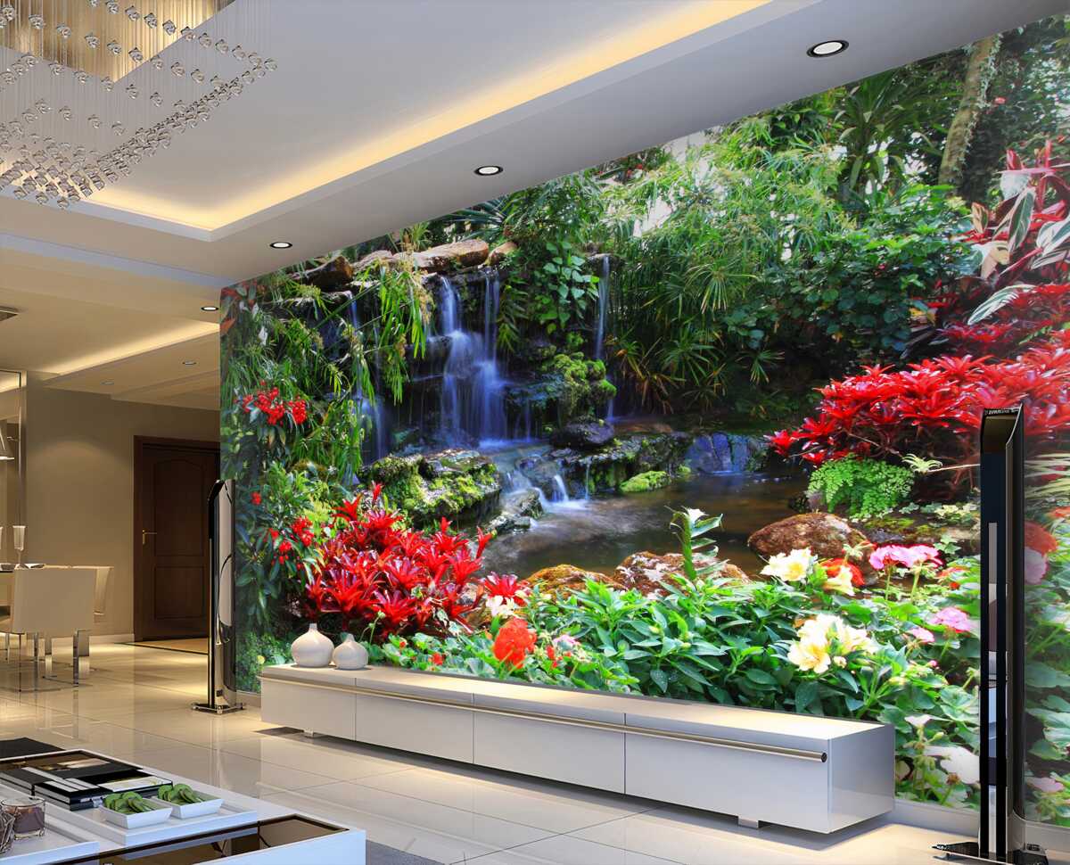 Tapeta Fototapeta miejsce z historią obok wodospadu z kwiatami (artykuł a95997 ) z kategorii Fototapety Popularne