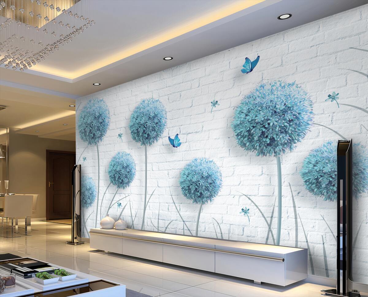 Tapeta Fototapeta niebieskie okrągłe kwiaty na białym murze (artykuł a96471 ) z kategorii Fototapety Popularne