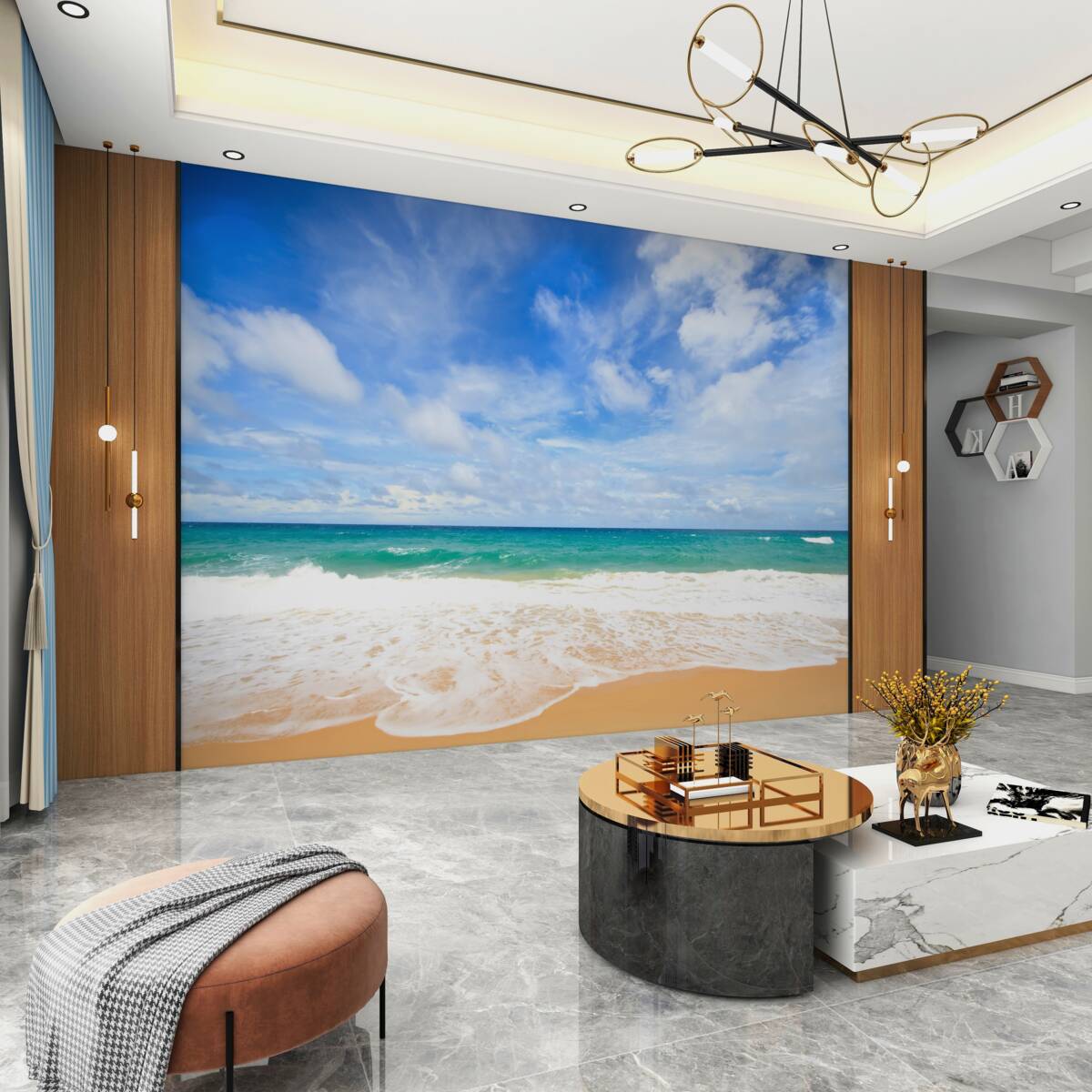 Tapeta Fototapeta niekończące się błękitne wody oceanu i plaża (artykuł a95184 ) z kategorii Fototapety Popularne