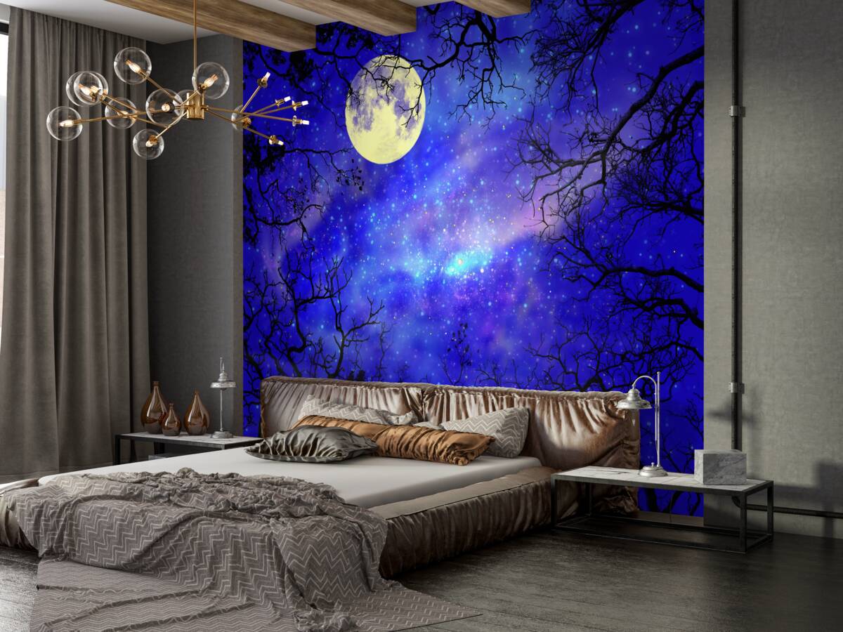 Tapeta Fototapeta nocny jasny księżyc na rozgwieżdżonym niebie (artykuł a95604 ) z kategorii Fototapety Popularne