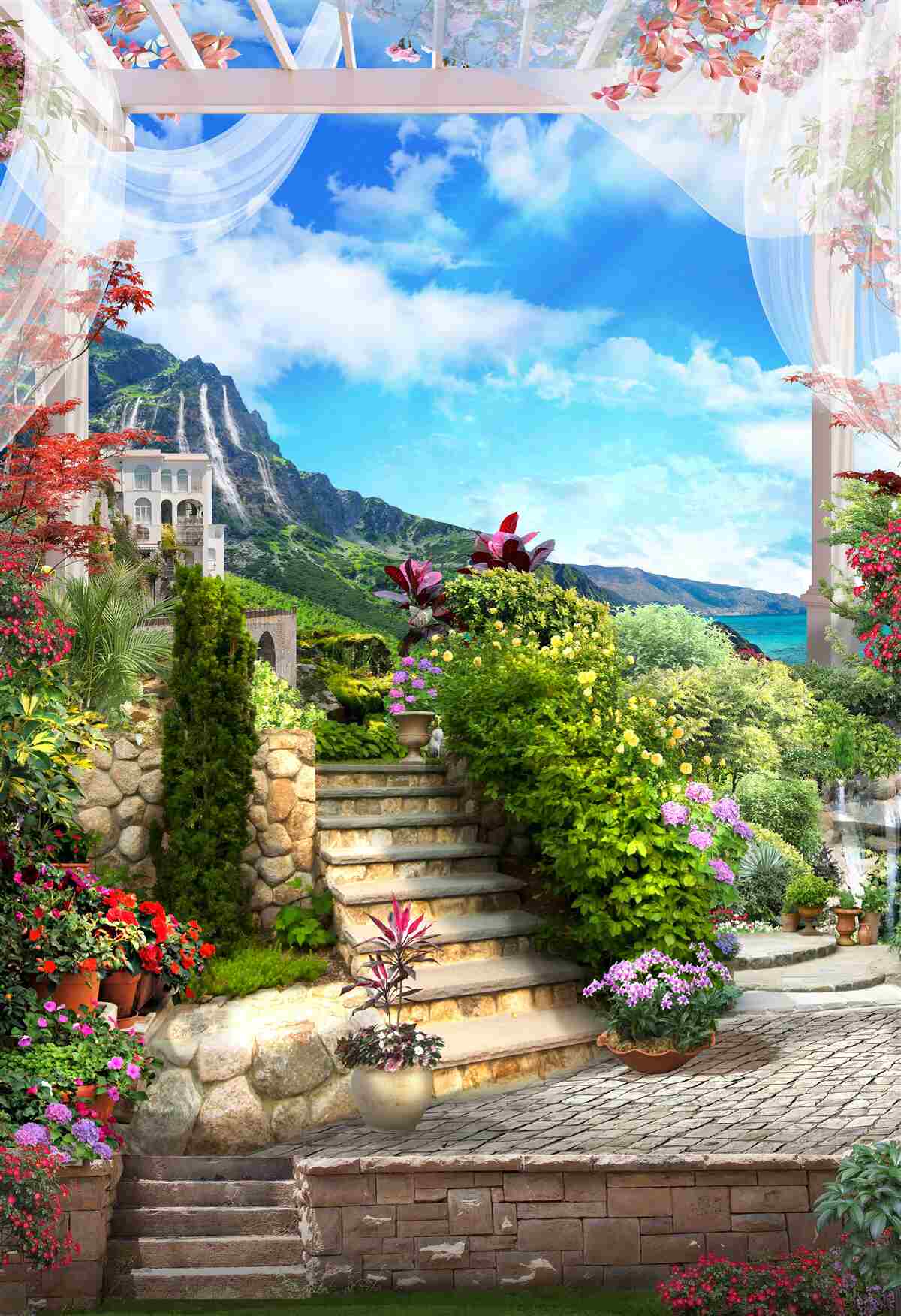 Tapeta Fototapeta ogród nad morzem (artykuł a96771 ) z kategorii Fototapety Popularne