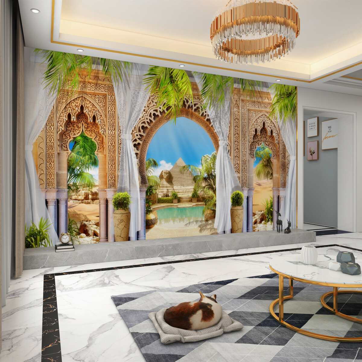 Tapeta Fototapeta orientalne okrągłe łuki z pięknym widokiem (artykuł a96124 ) z kategorii Fototapety Popularne