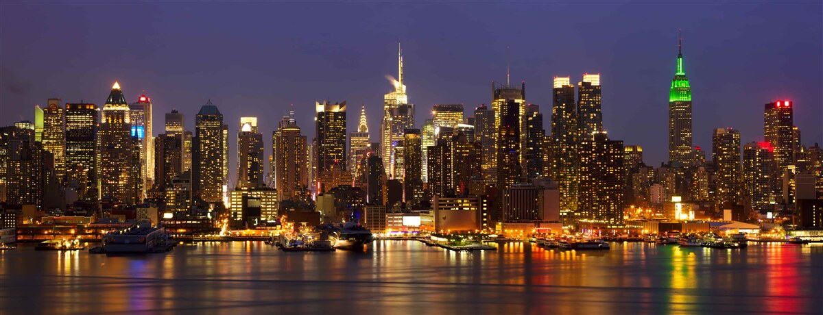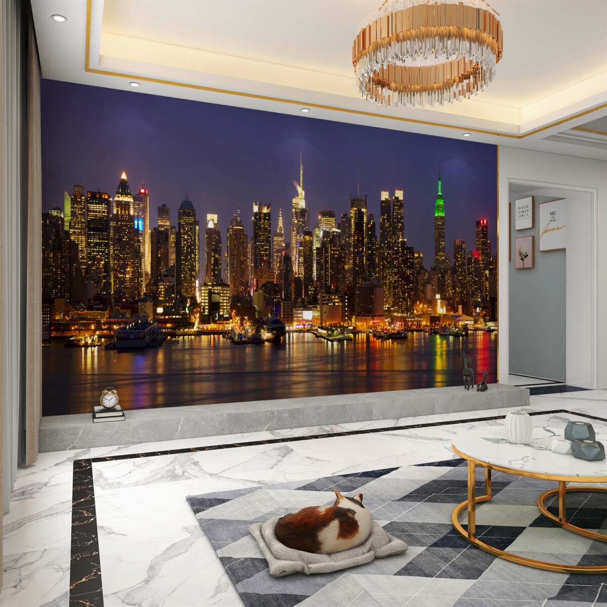 Tapeta Fototapeta oświetlone nocne drapacze chmur w mieście (artykuł a95734 ) z kategorii Fototapety Popularne