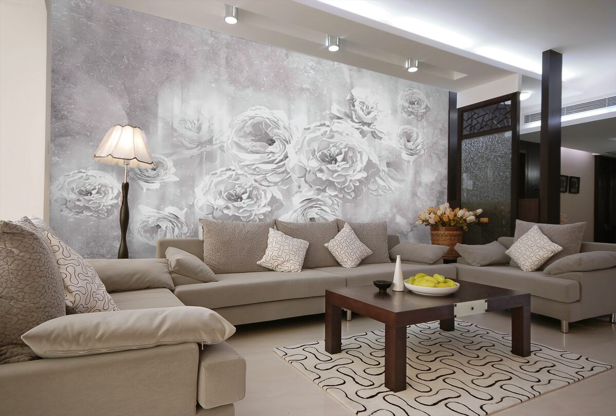 Tapeta Fototapeta otwarte róże na szarym i białym tle (artykuł a97137 ) z kategorii Fototapety Popularne