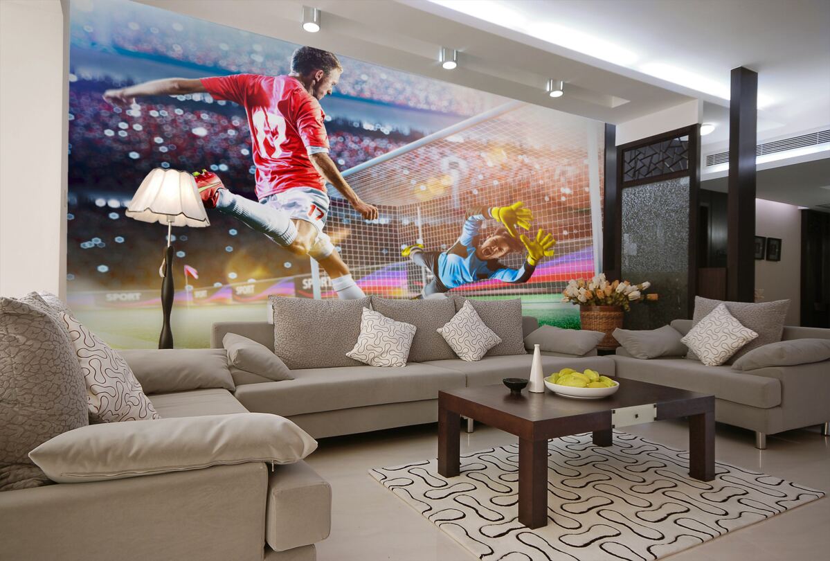 Tapeta Fototapeta piłkarz strzela do bramki (artykuł a96218 ) z kategorii Fototapety Popularne