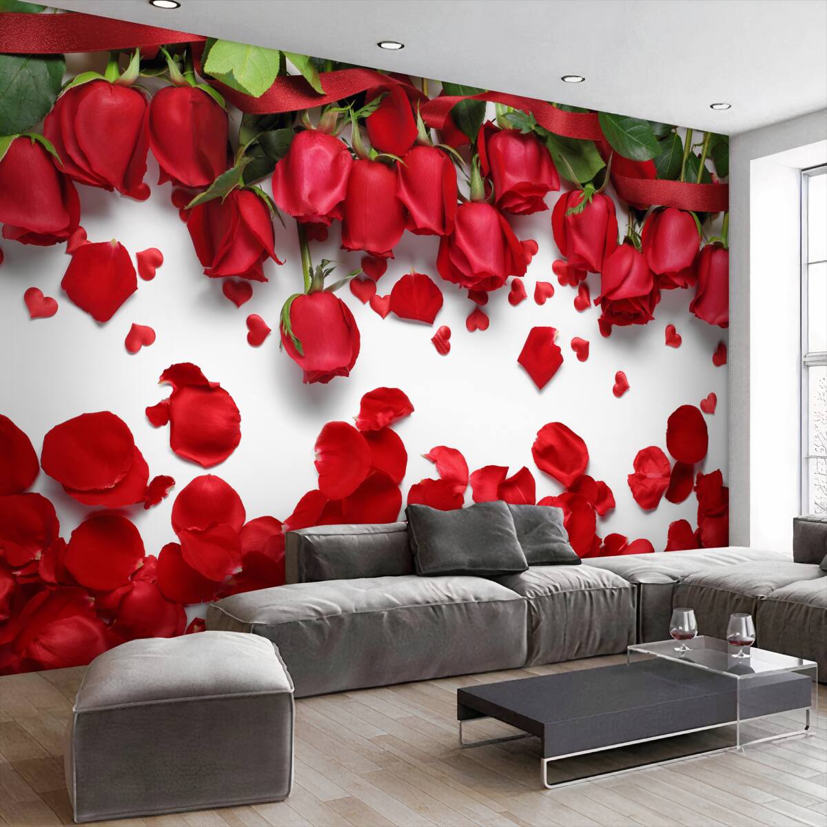 Tapeta Fototapeta płatki opadają ze szkarłatnych czerwonych róż (artykuł a95979 ) z kategorii Fototapety Popularne