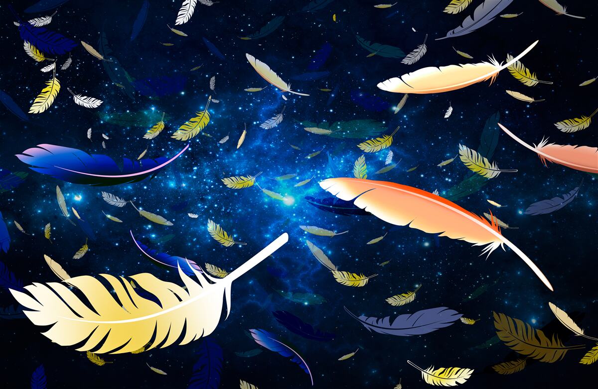 Fototapeta pływające kolorowe pióra w głębinach kosmosu