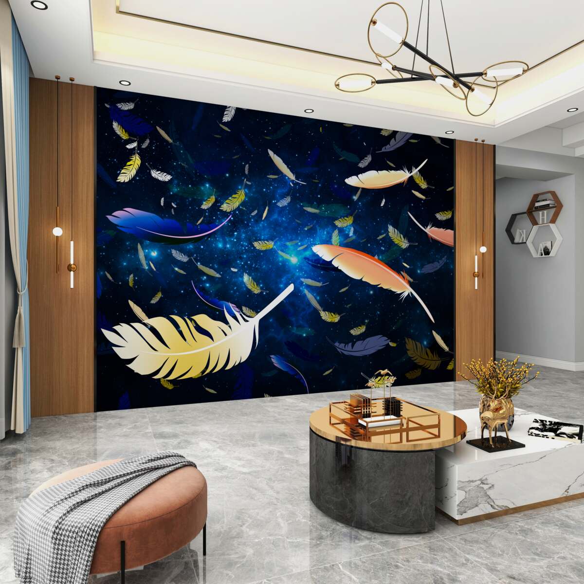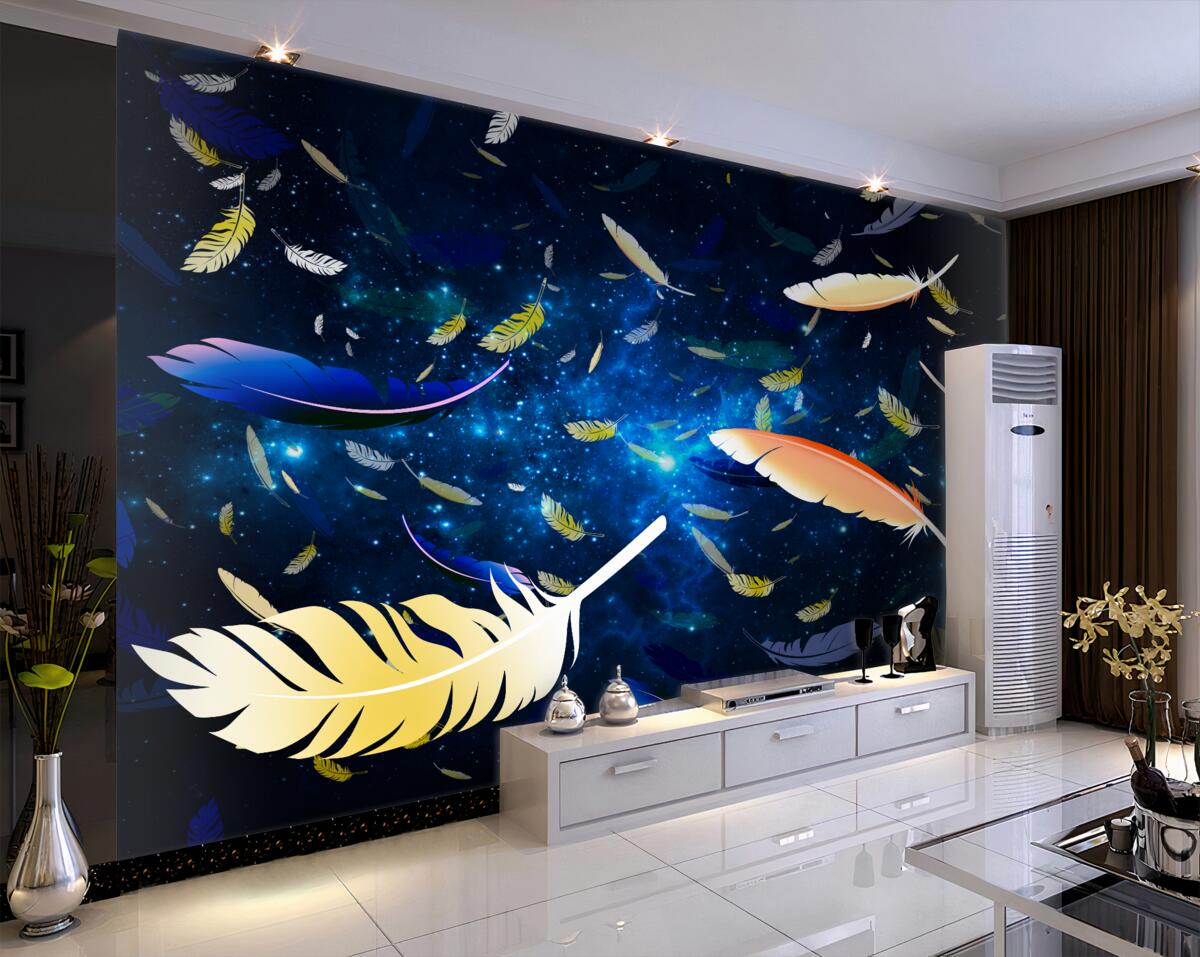 Tapeta Fototapeta pływające kolorowe pióra w głębinach kosmosu (artykuł a96174 ) z kategorii Fototapety Popularne