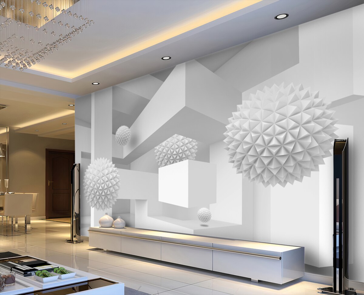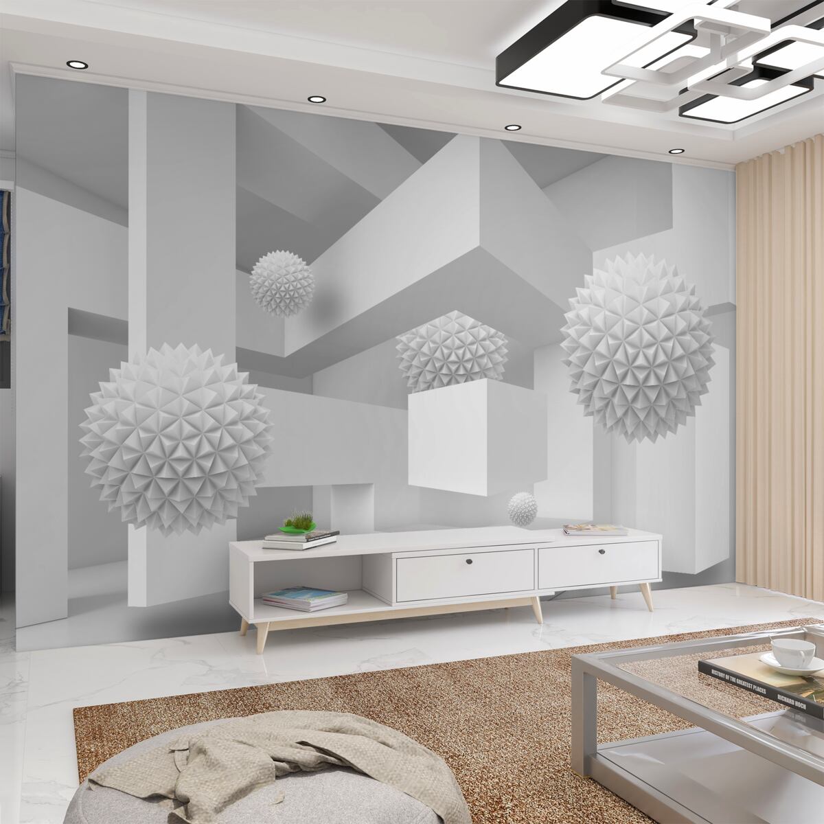 Tapeta Fototapeta pływające spiczaste kule w abstrakcji geometrycznej (artykuł a96156 ) z kategorii Fototapety Popularne