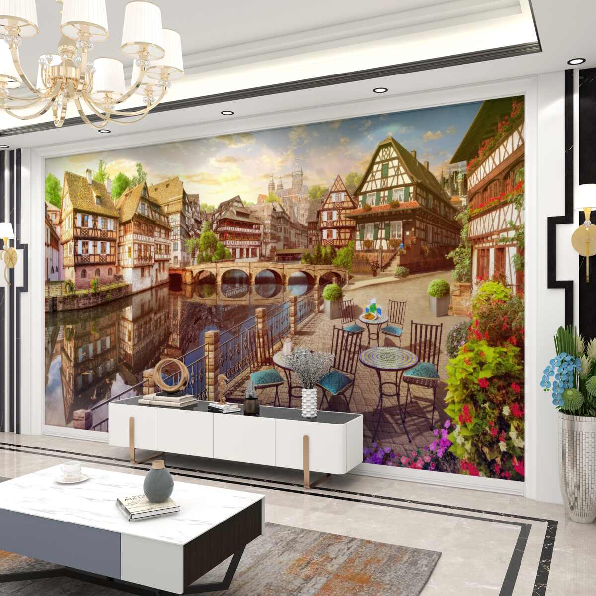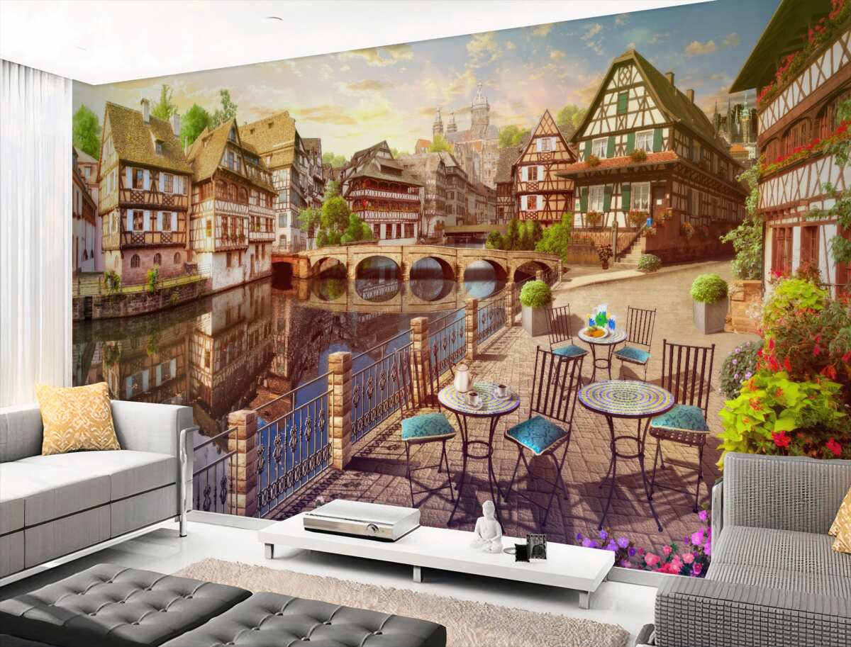 Tapeta Fototapeta posiłki nad wodą na starym mieście (artykuł a97208 ) z kategorii Fototapety Popularne