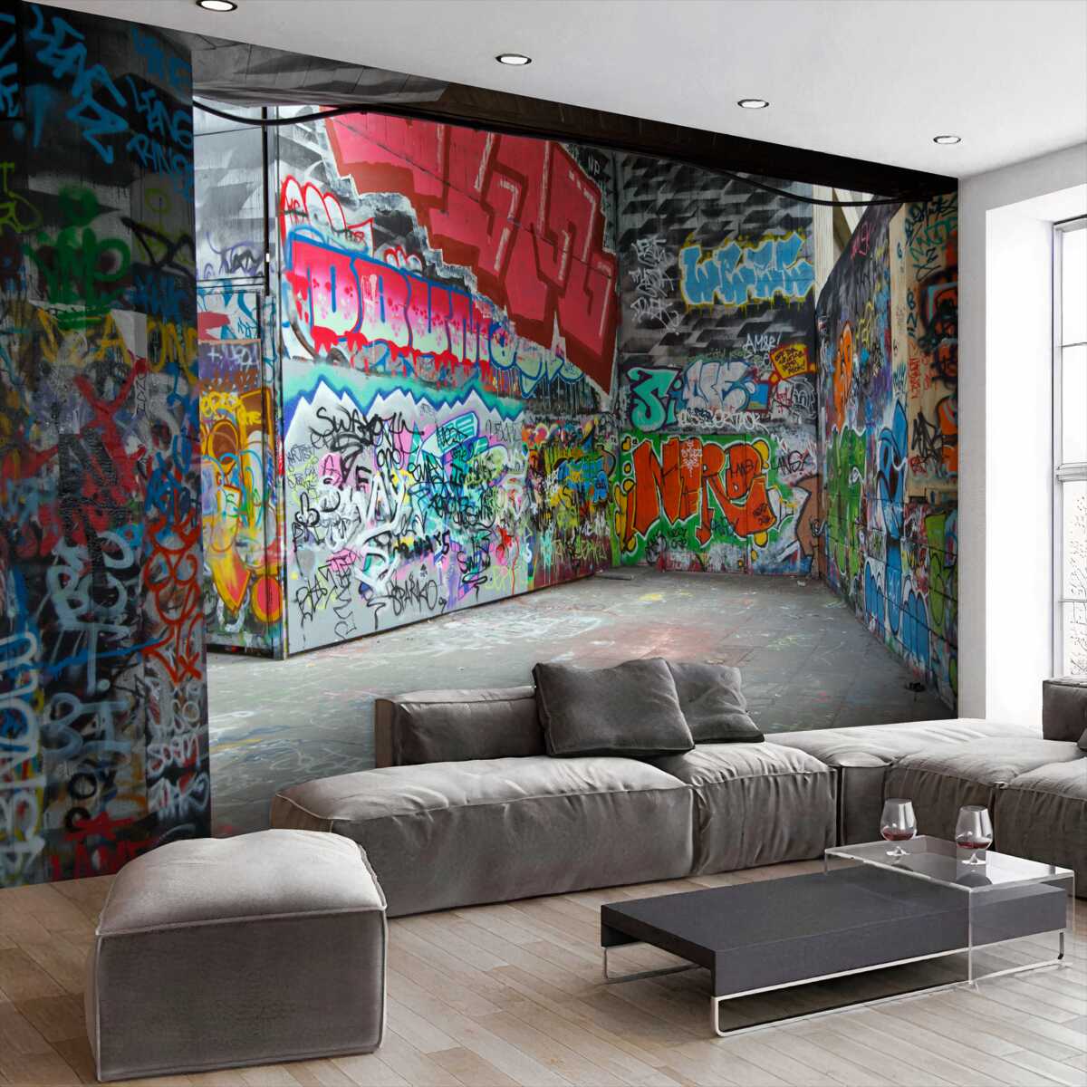 Tapeta Fototapeta przejście podziemne na rysunkach graffiti (artykuł a95767 ) z kategorii Fototapety Popularne