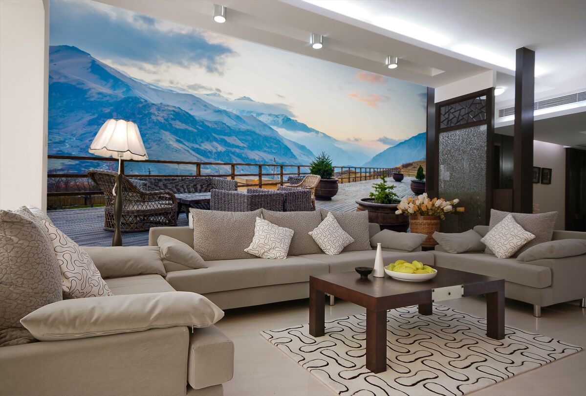 Tapeta Fototapeta przestronny taras w górskim krajobrazie (artykuł a95597 ) z kategorii Fototapety Popularne