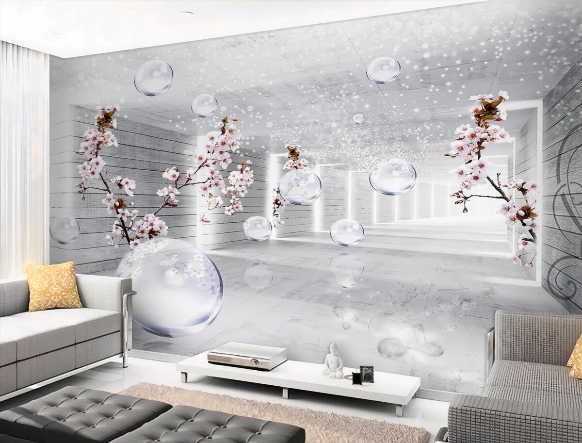 Tapeta Fototapeta przezroczyste koła i gałęzie z kwiatami (artykuł a97144 ) z kategorii Fototapety Popularne