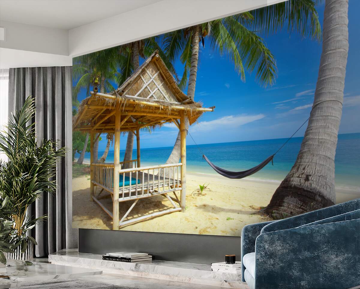 Tapeta Fototapeta przytulna altana na plaży nad wodą (artykuł a95764 ) z kategorii Fototapety Popularne