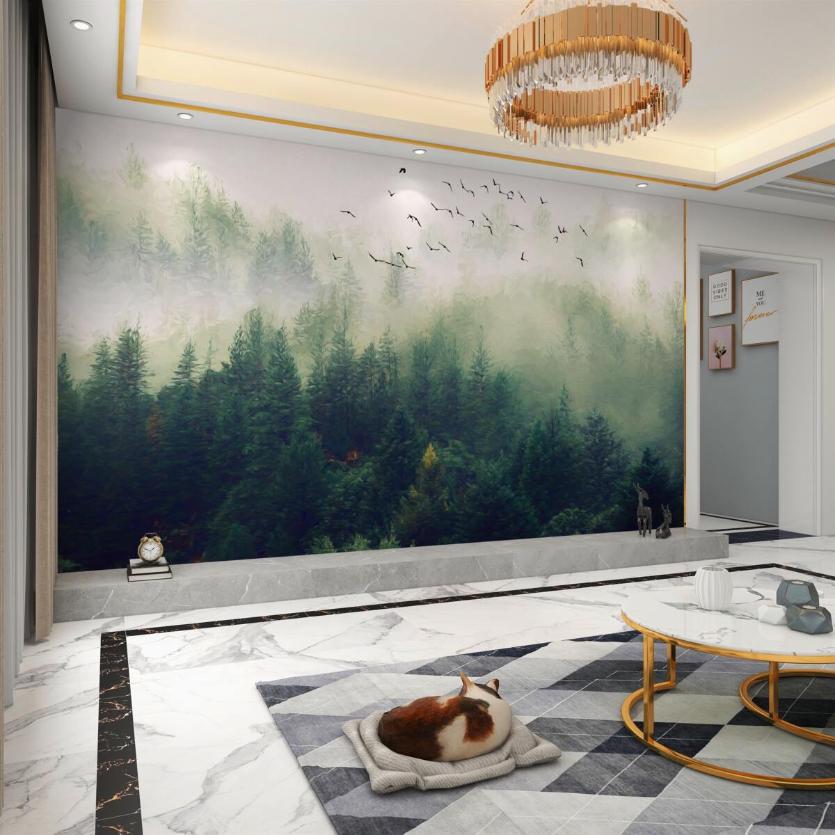 Tapeta Fototapeta ptaki latają nad lasem we mgle (artykuł a96441 ) z kategorii Fototapety Popularne