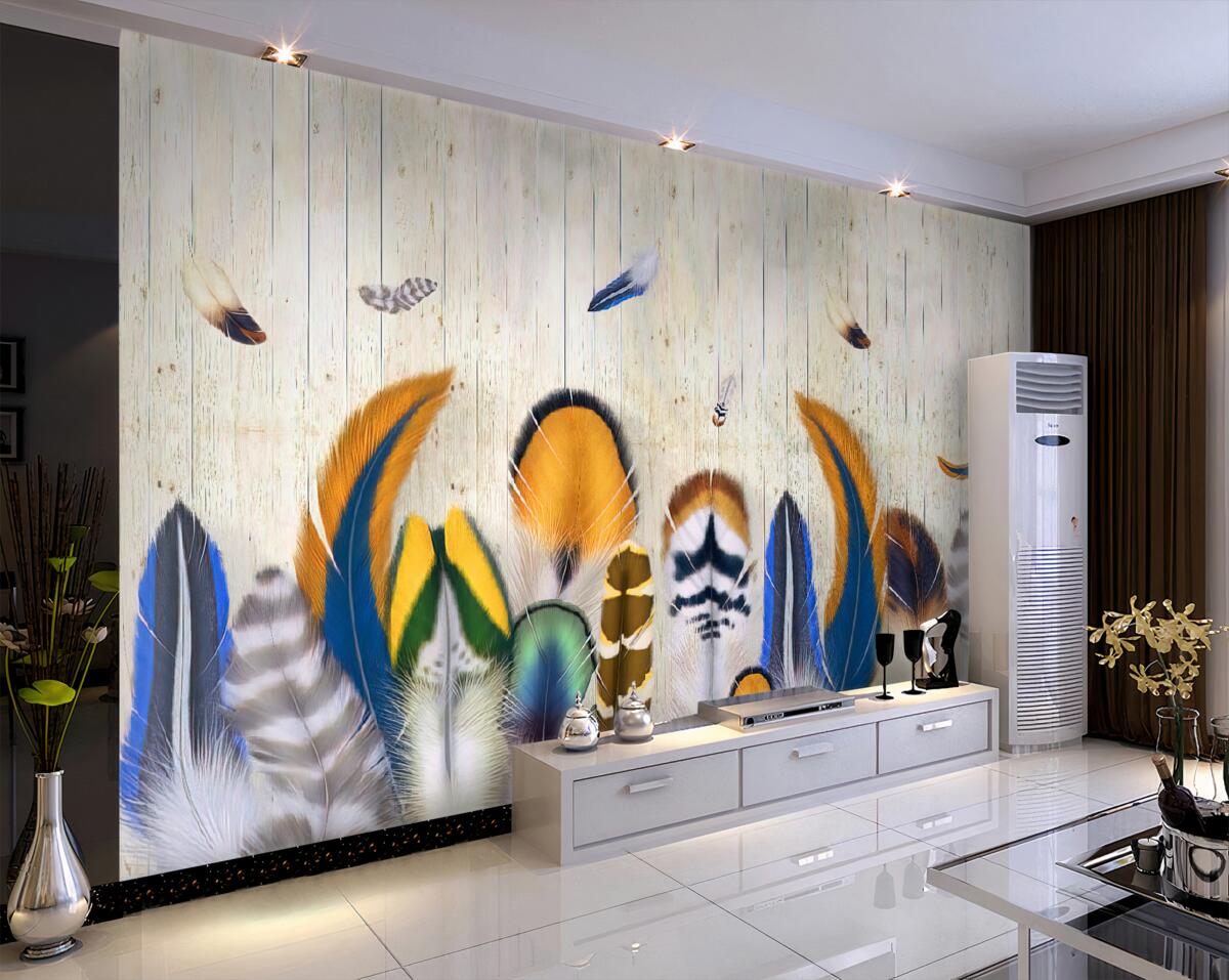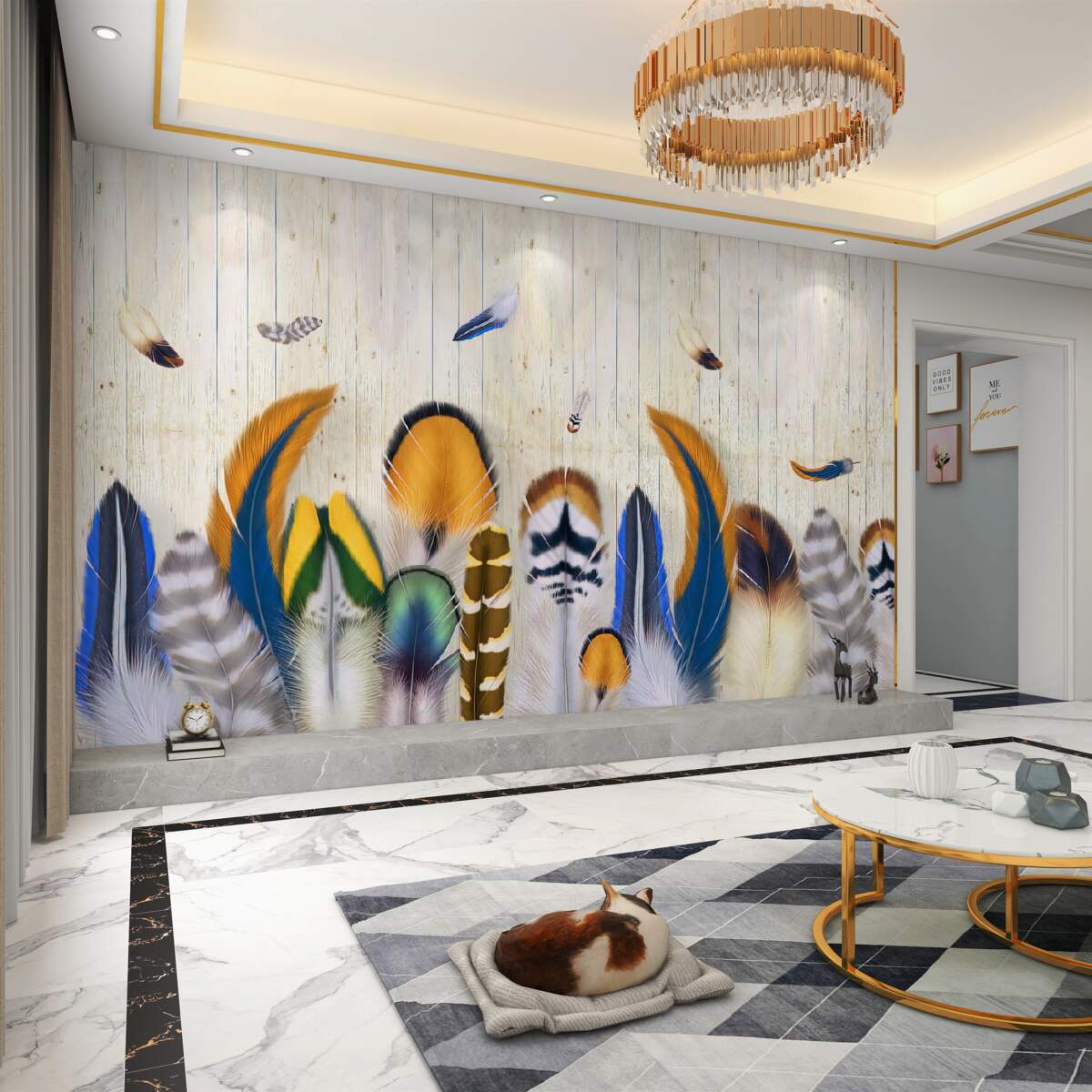 Tapeta Fototapeta ptasie pióra o różnych kształtach i kolorach (artykuł a97101 ) z kategorii Fototapety Popularne