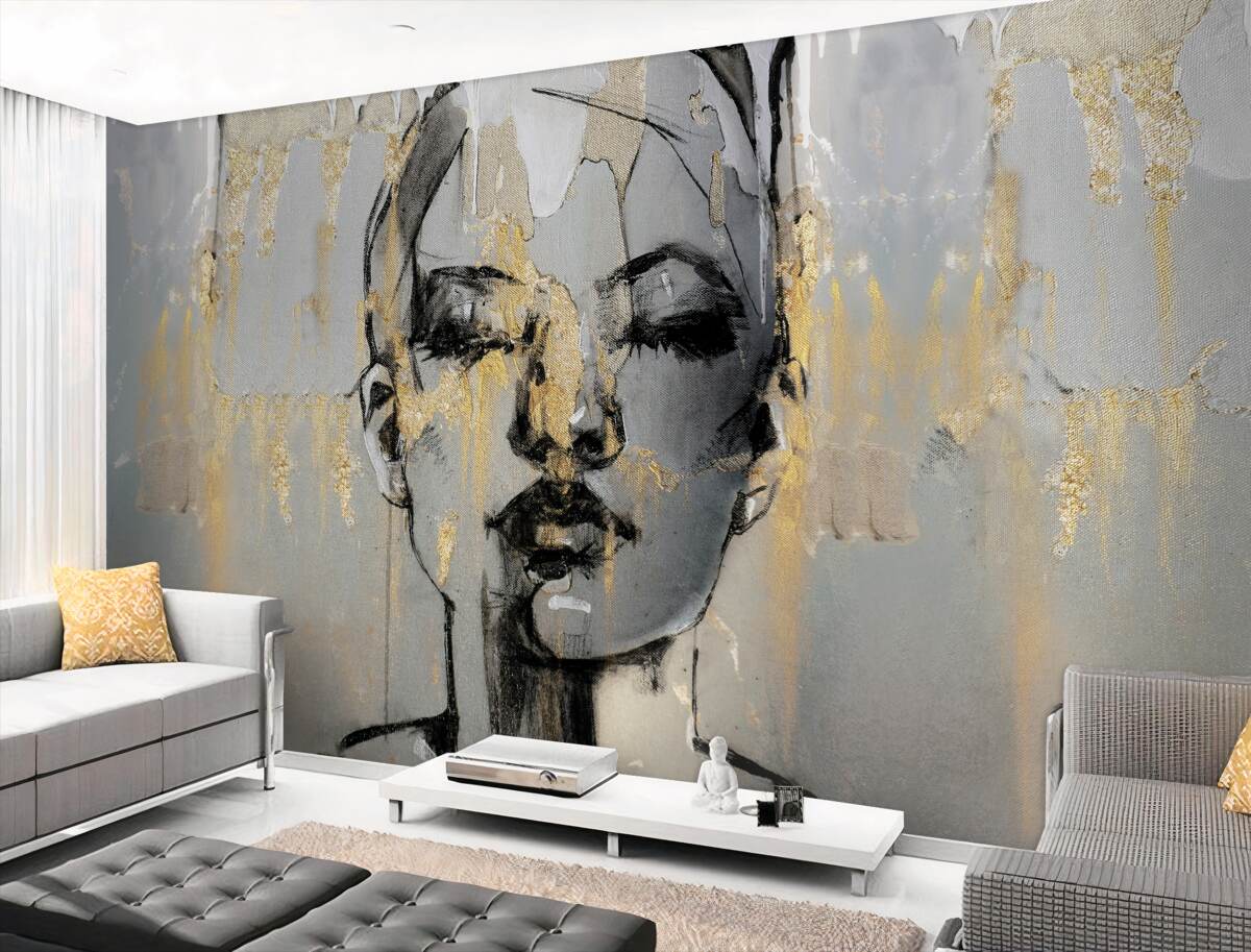 Tapeta Fototapeta ręcznie rysowana sylwetka dziewczyny z zamkniętymi oczami (artykuł a97489 ) z kategorii Fototapety Popularne