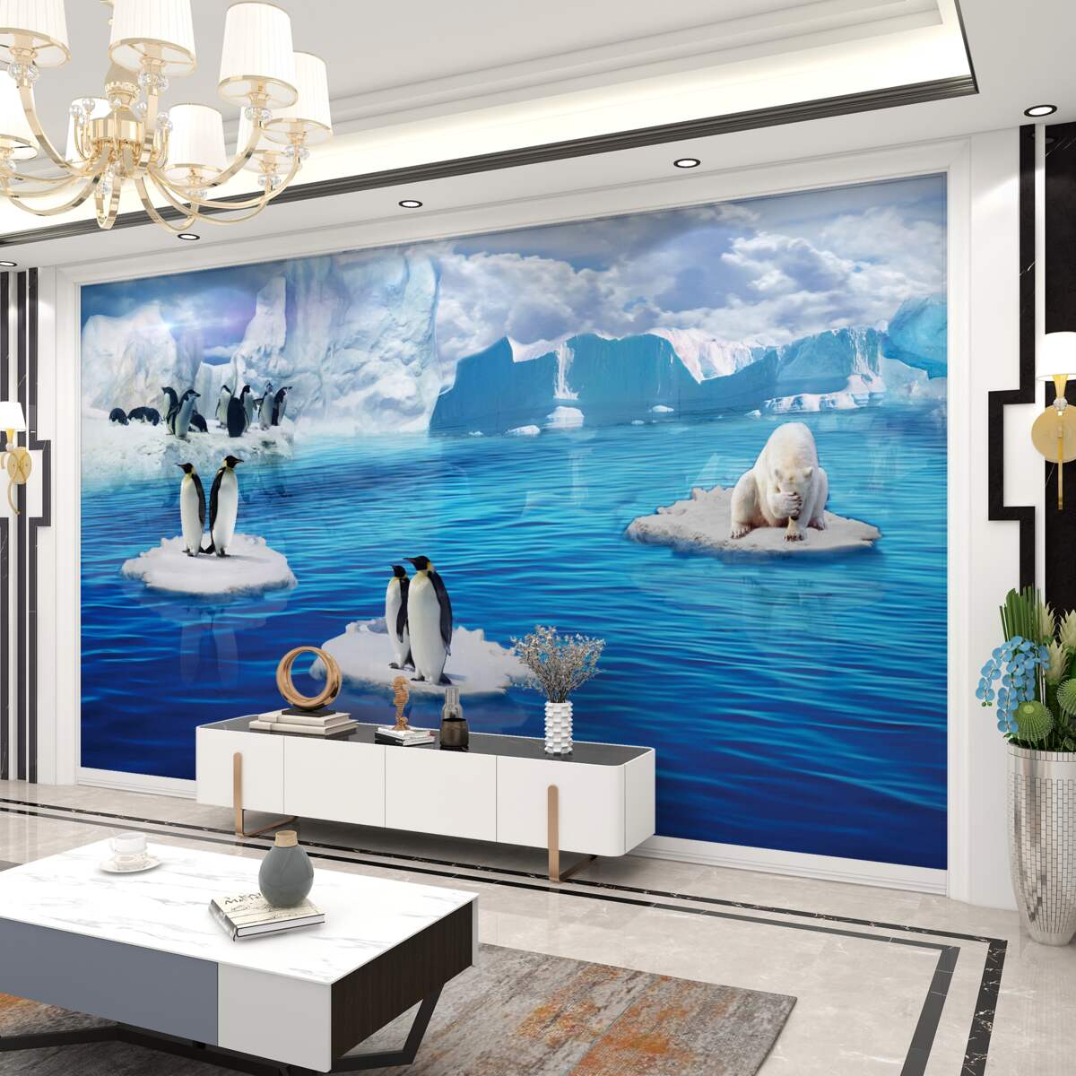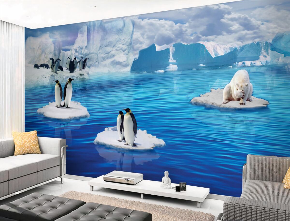 Tapeta Fototapeta rodzina pingwinów na kawałkach lodu (artykuł a95908 ) z kategorii Fototapety Popularne