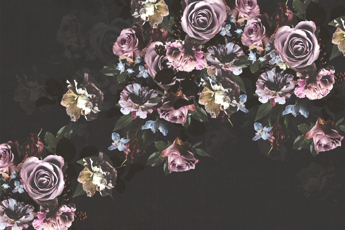 Tapeta Fototapeta różowe kwiaty na czarnym tle (artykuł a96501 ) z kategorii Fototapety Popularne