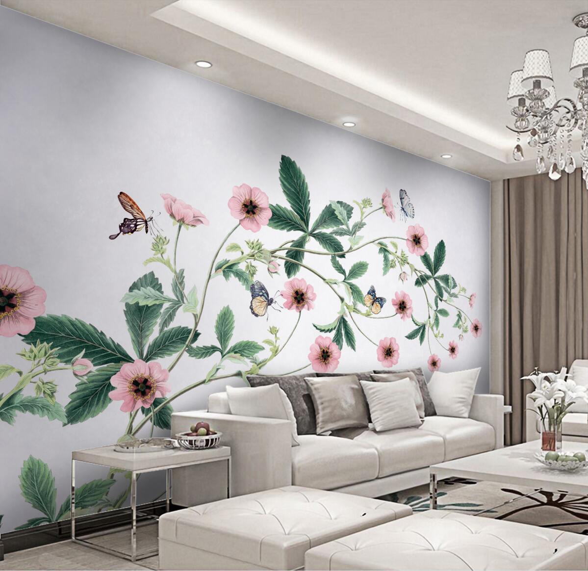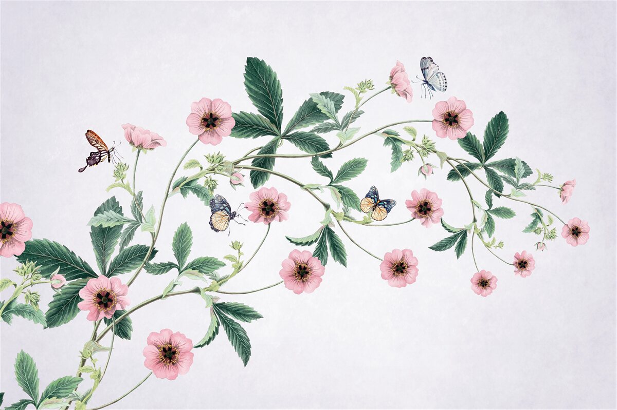 Tapeta Fototapeta różowe kwiaty na gałęziach na szarym tle (artykuł a95052 ) z kategorii Fototapety Popularne